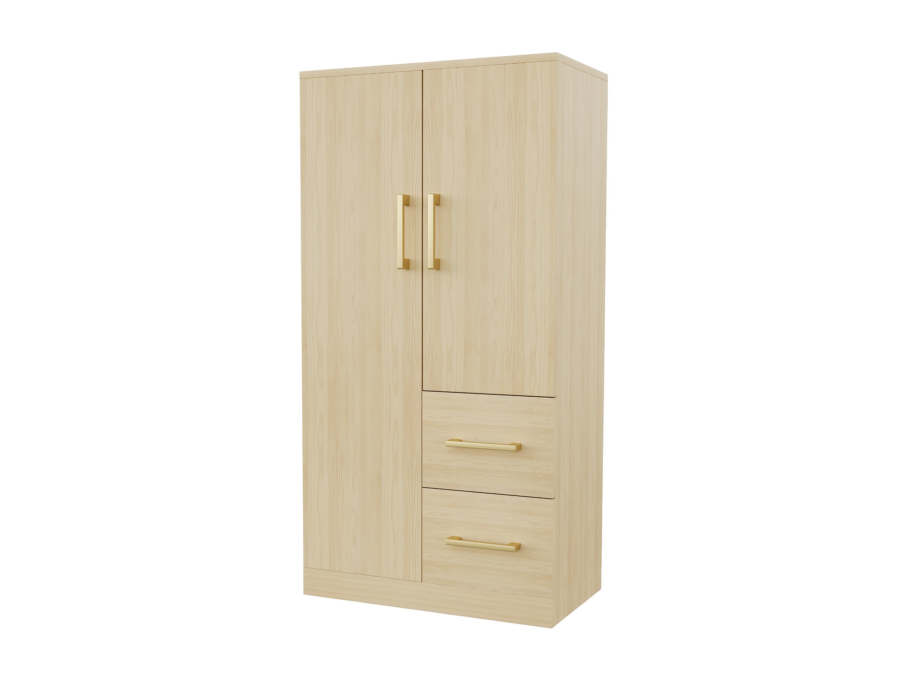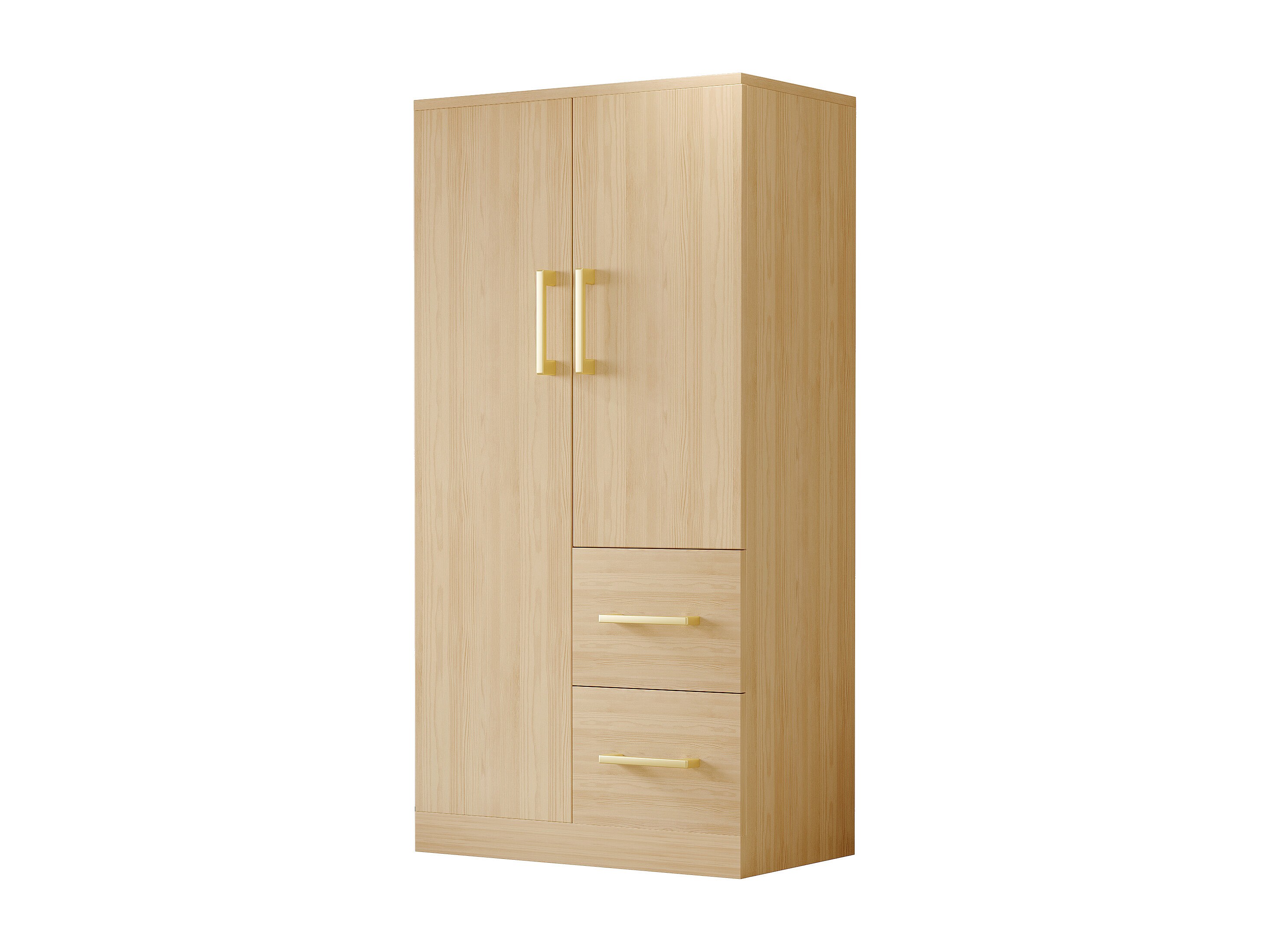 Armoire à 2 portes pour enfant avec 2 tiroirs et compartiments de rangement - 70 x 45 x 135 cm - bois - naturel