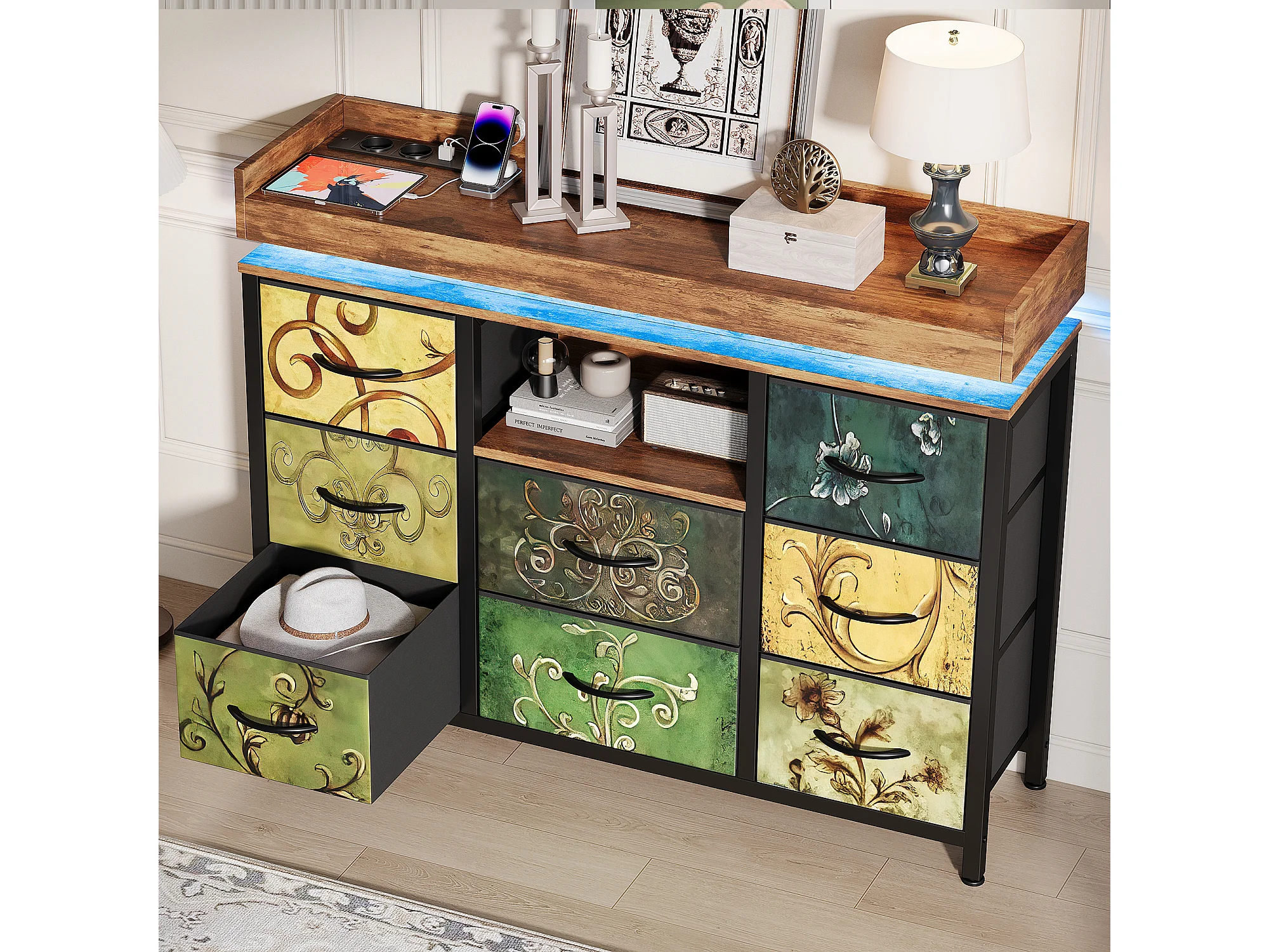 Armoire à 8 tiroirs - 108 x 30 x 82 cm - avec lumière LED RVB - avec prise de charge - multicolore