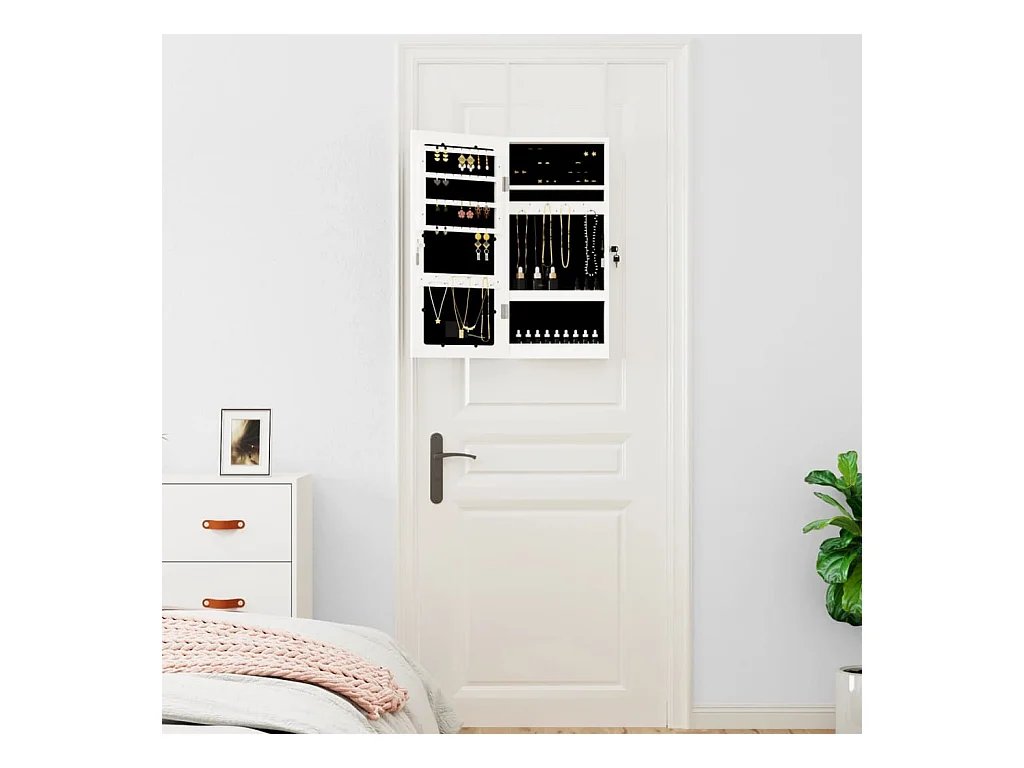 Armoire à bijoux avec miroir et éclairage LED mural blanc
