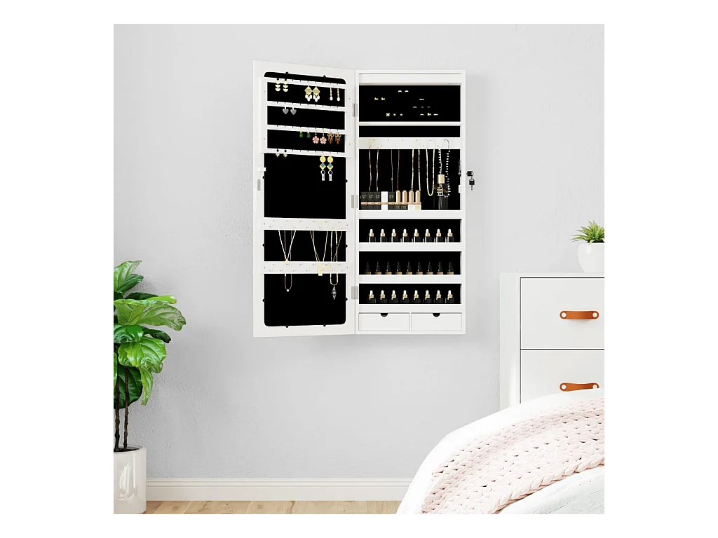 Armoire à bijoux avec miroir et éclairage LED mural blanc