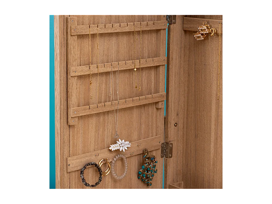 Armoire à bijoux avec miroir NORA coloris effet bois naturel - Longueur 42 x Profondeur 37,5 x Hauteur 145 cm
