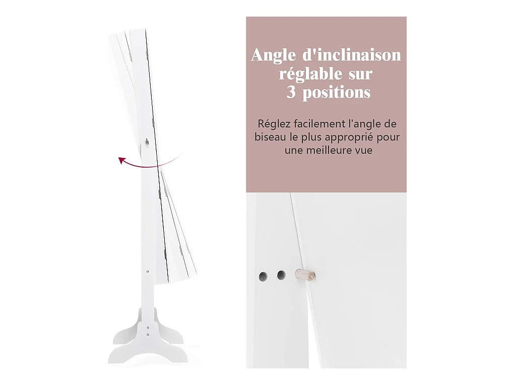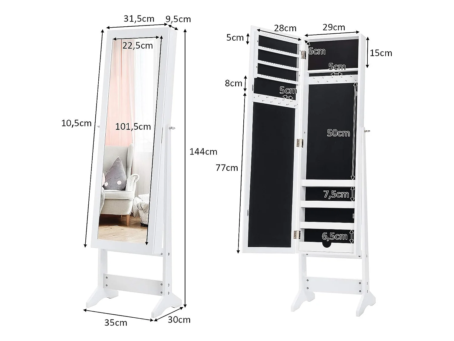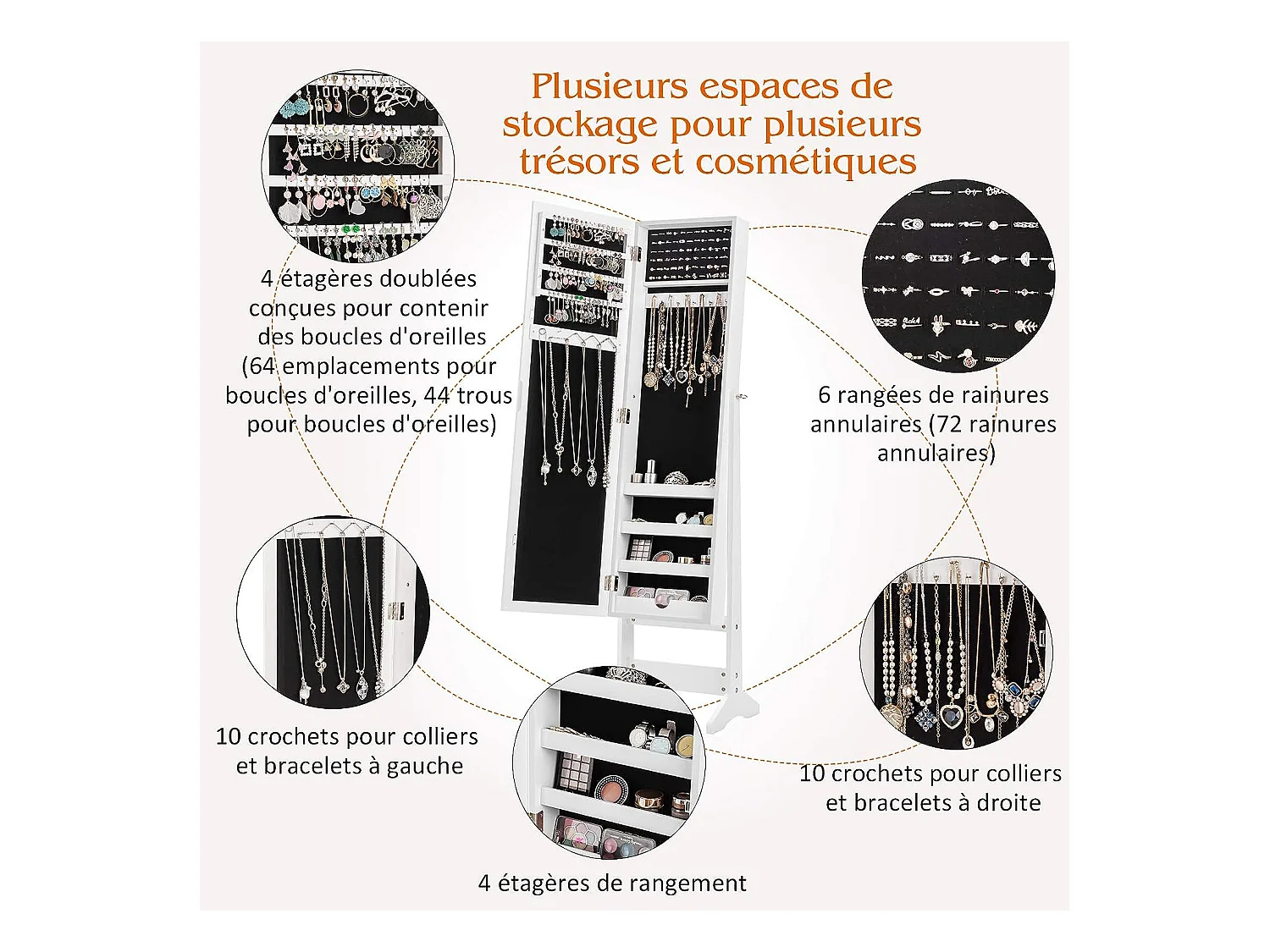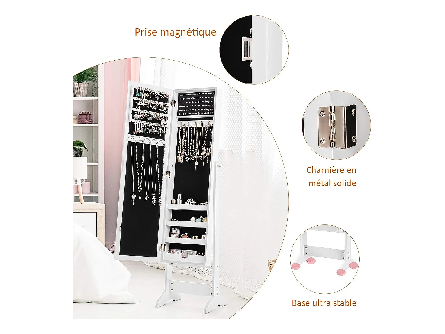 Armoire à bijoux sur pied avec miroir psyché coffre à bijoux, armoire de rangement cosmétiques