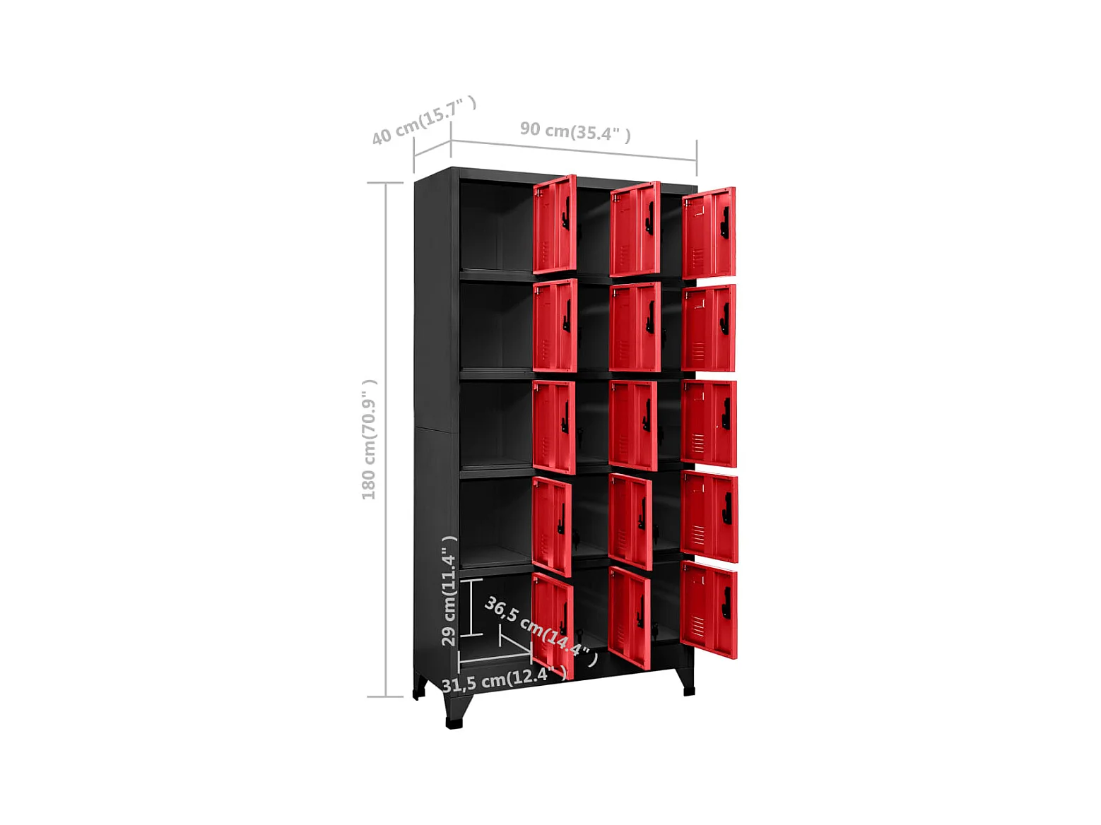 Armoire à casiers Anthracite et rouge 90x40x180 Acier Pokaz