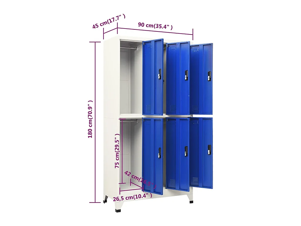 Armoire à casiers Gris et bleu 90x45x180 Acier 2