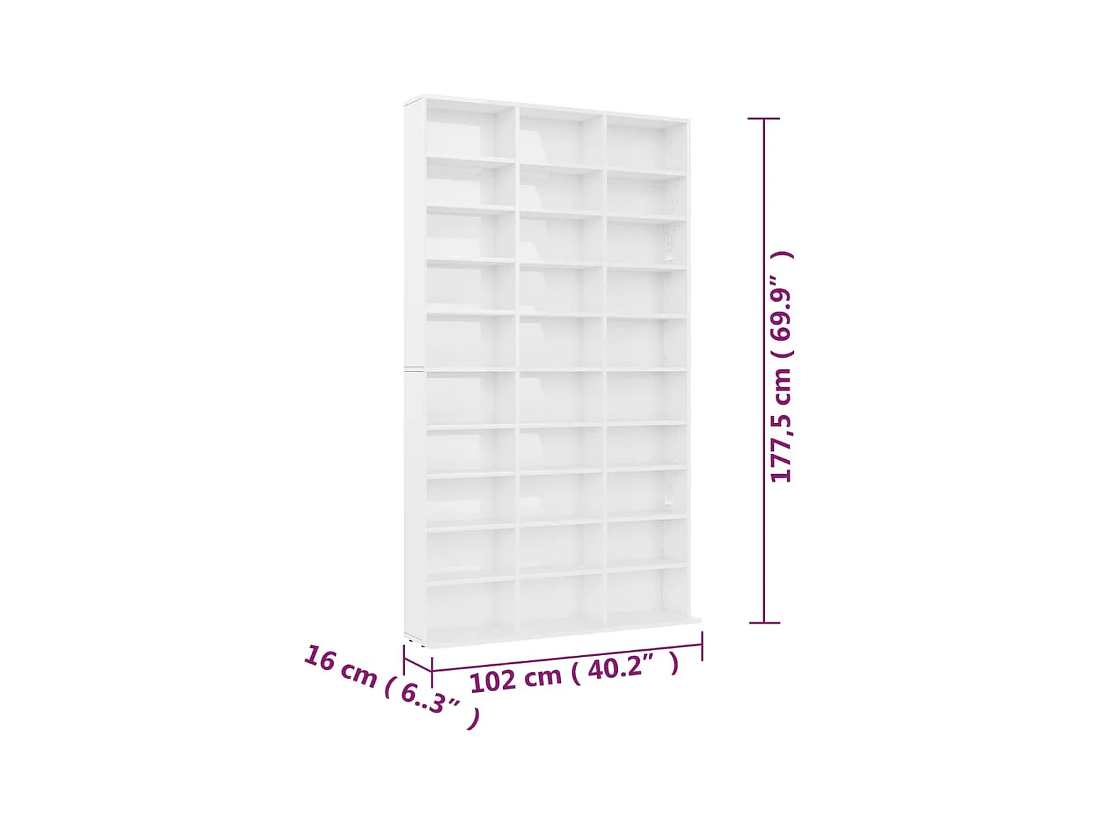 Armoire à CD Blanc brillant 102x16x177,5 cm Bois d'ingénierie