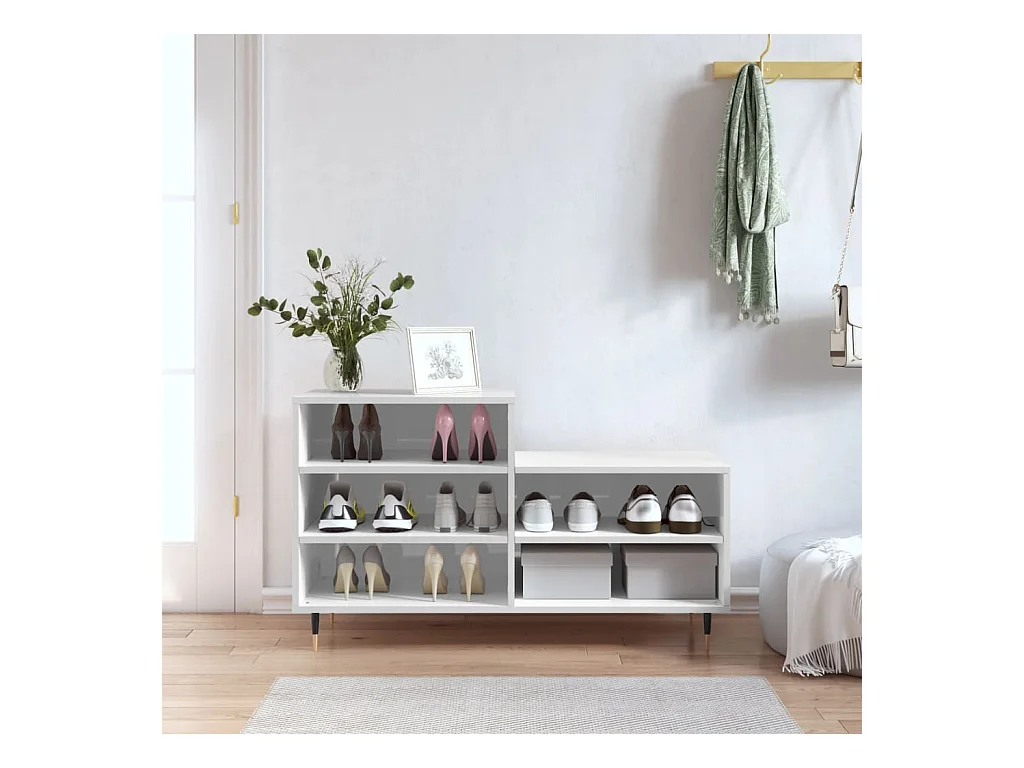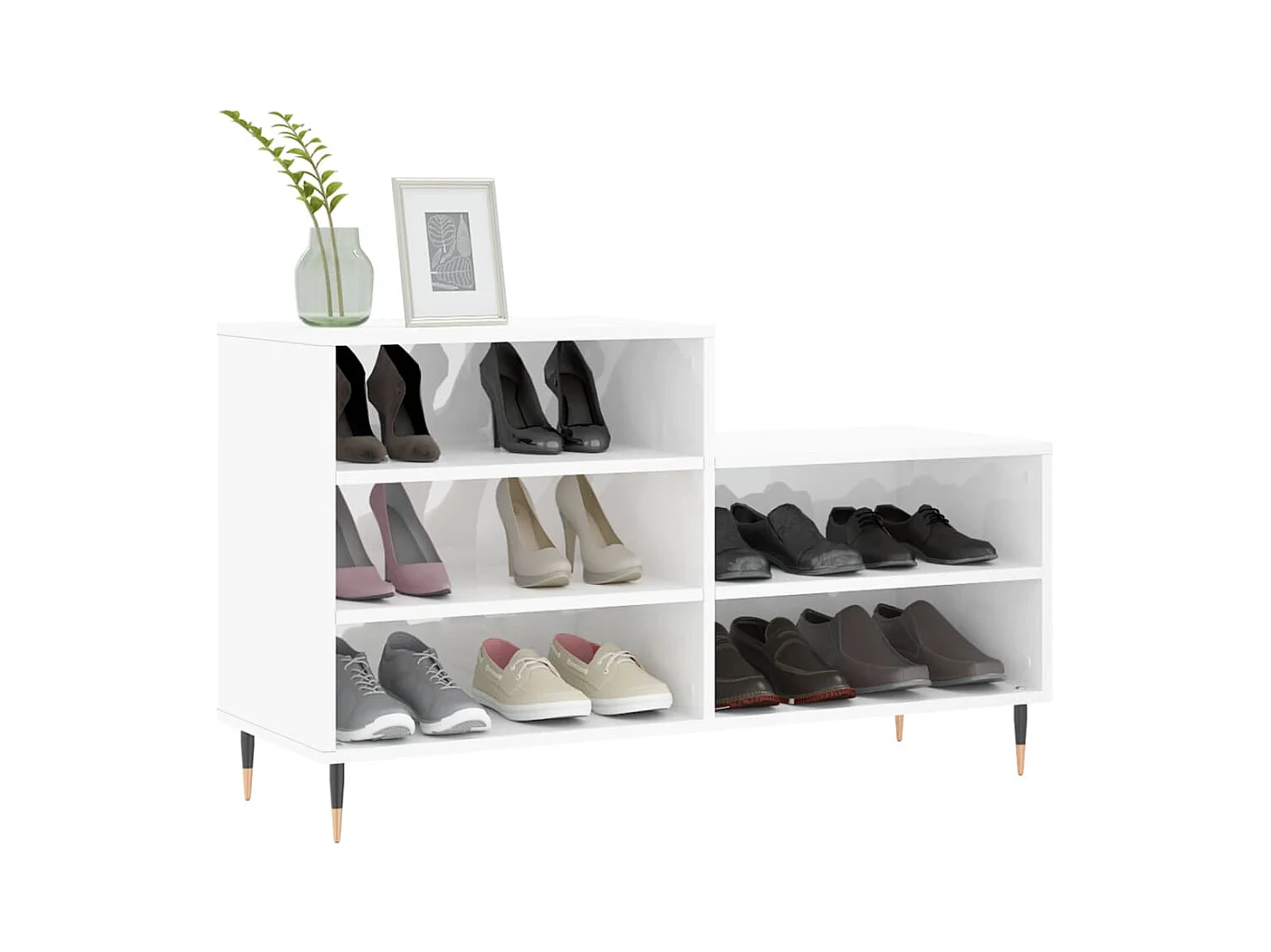 Armoire à chaussure Blanc brillant 102x36x60 Bois ingénierie