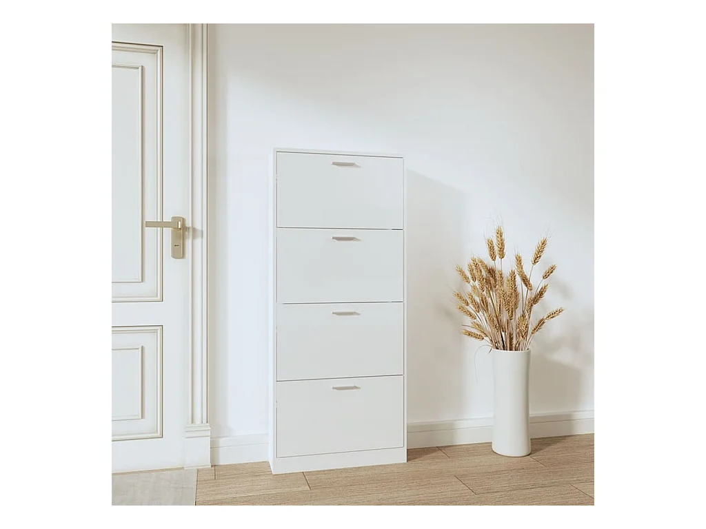 Armoire à chaussure Blanc brillant 59x17x150 Bois ingénierie