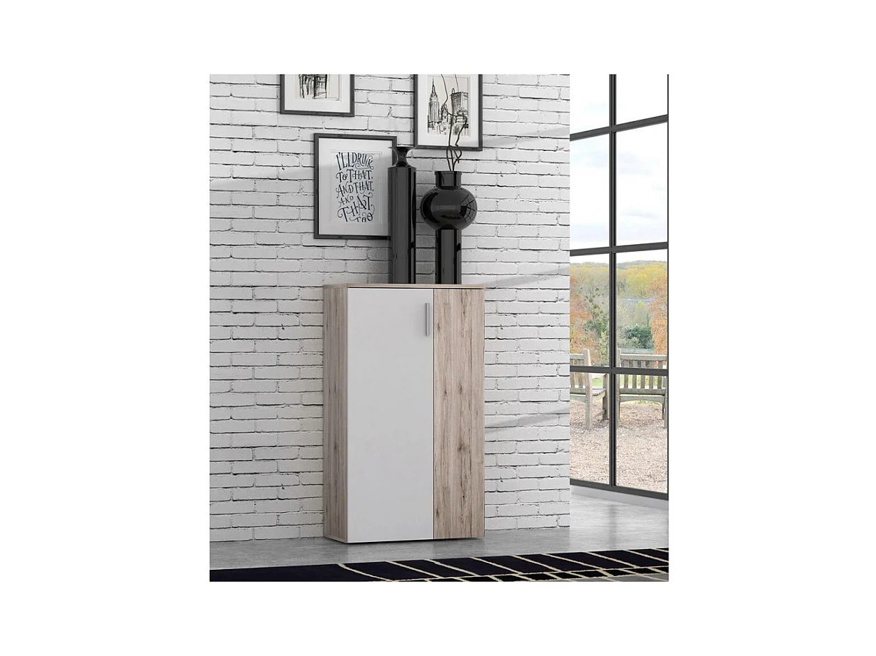 Armoire à chaussures 2 portes 5 tablettes décor bois vieilli - AMELIE