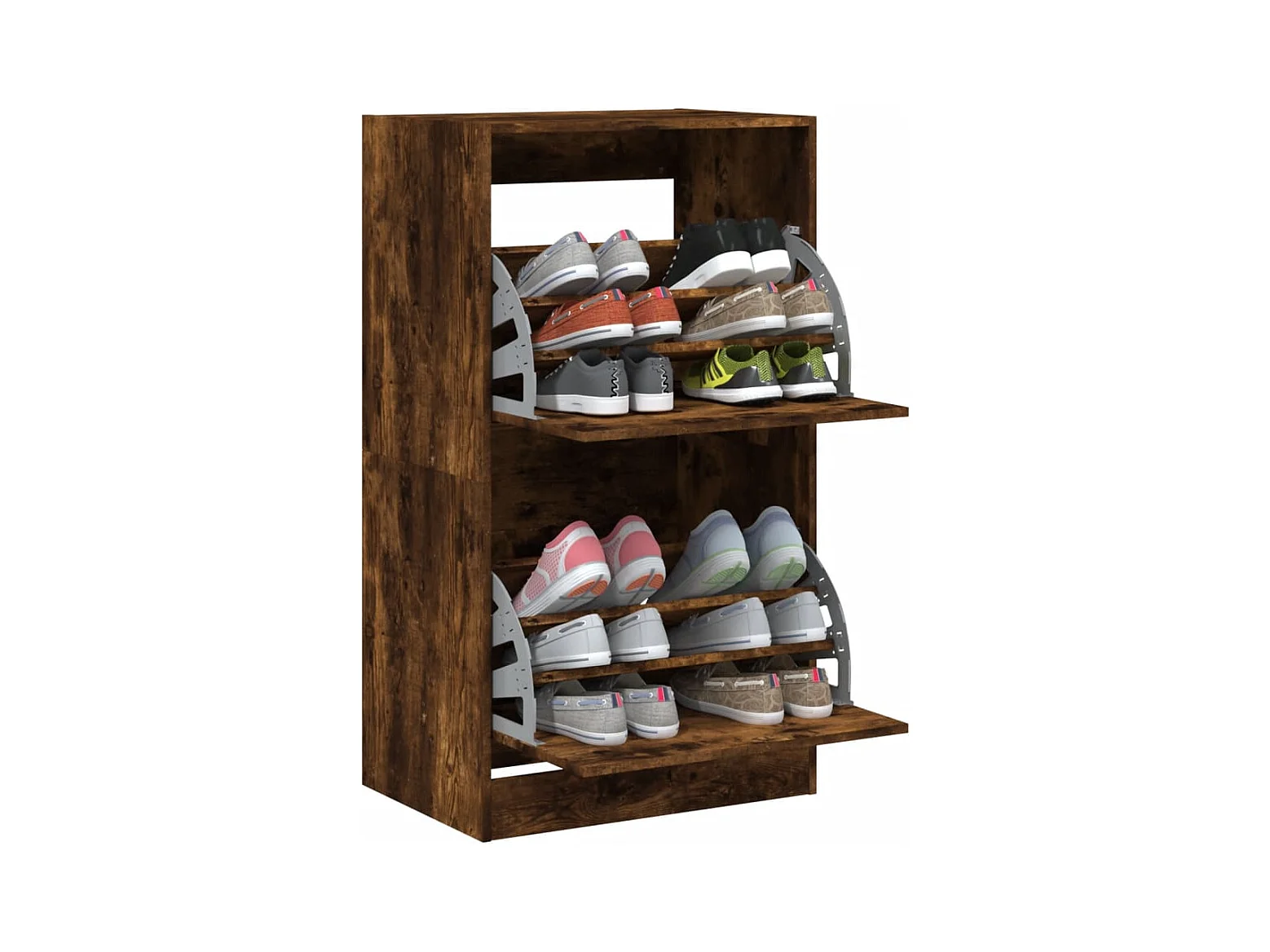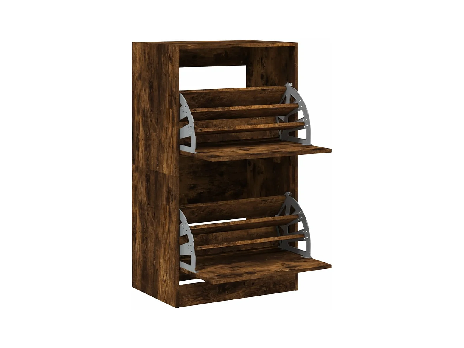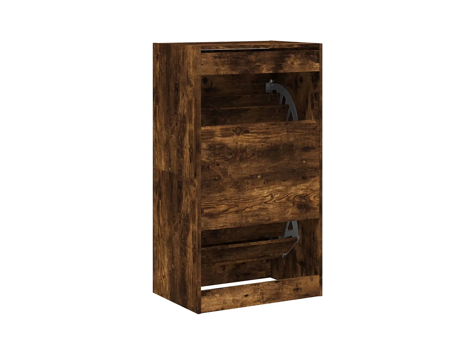 Armoire à chaussures 2 tiroirs rabattables chêne fumé