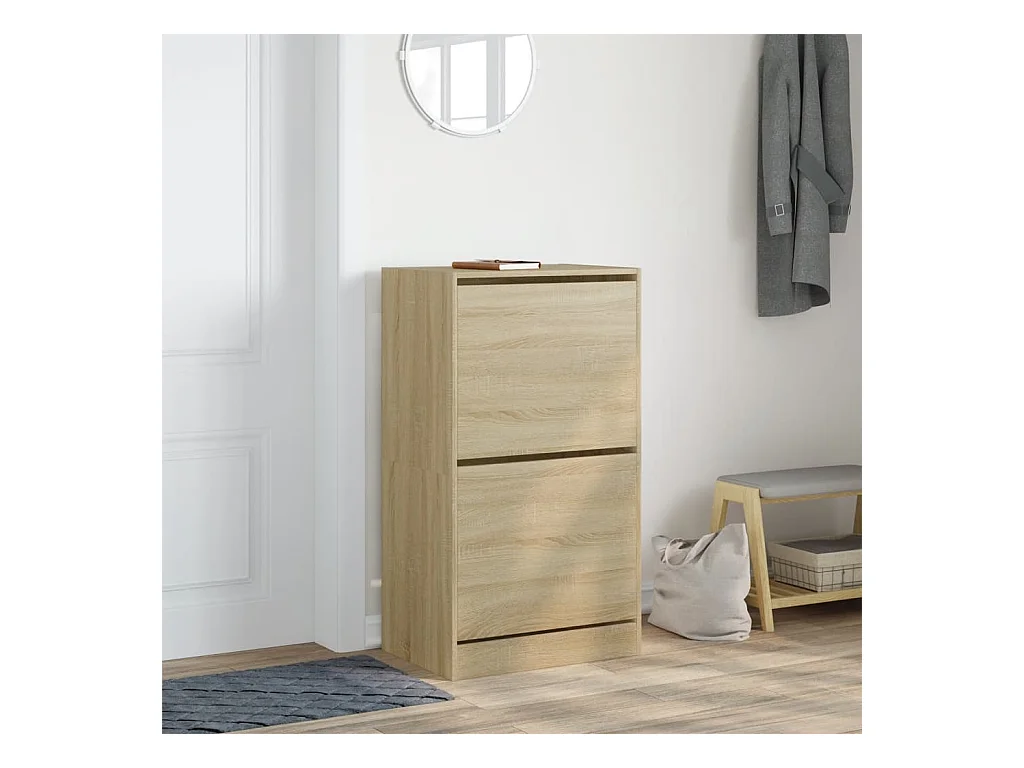 Armoire à chaussures 2 tiroirs rabattables chêne sonoma