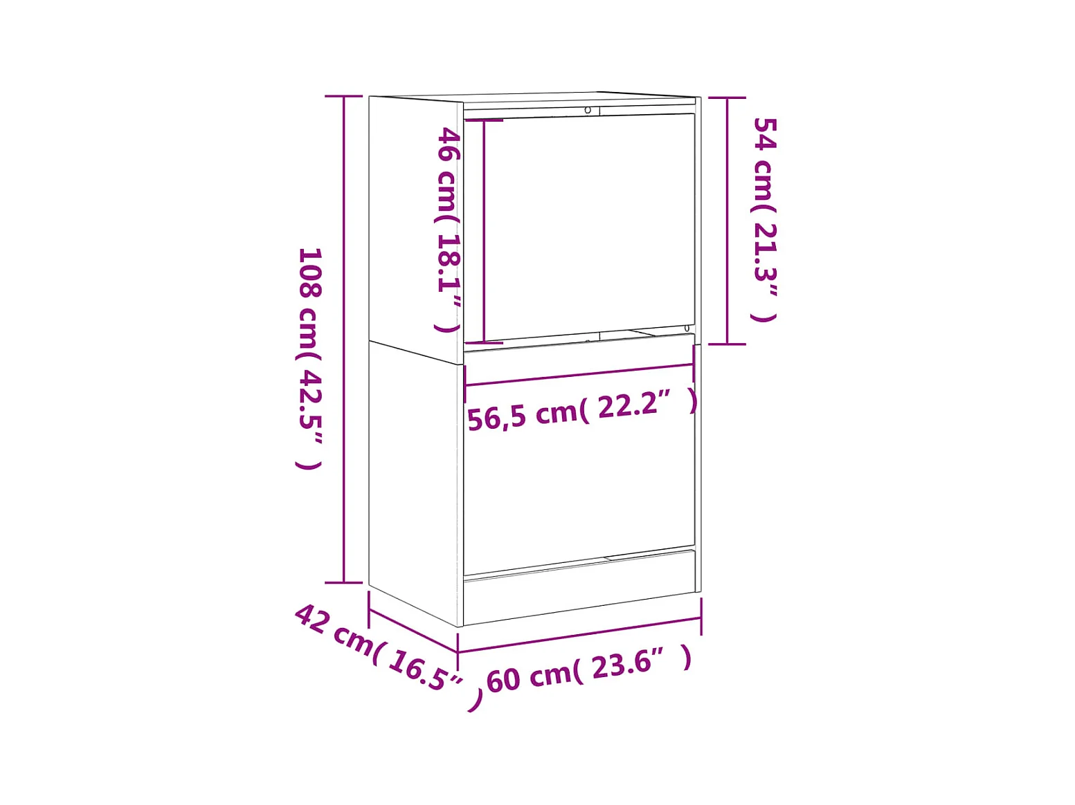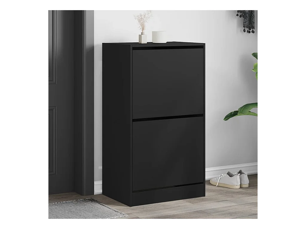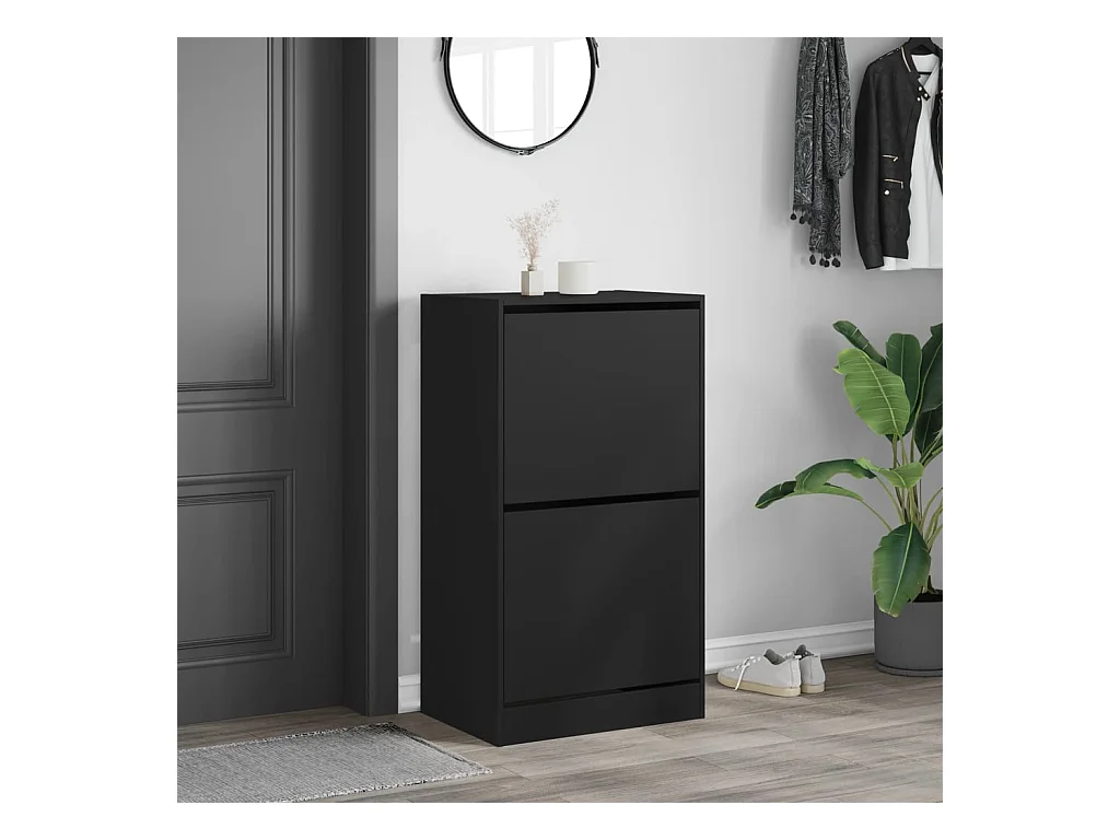 Armoire à chaussures 2 tiroirs rabattables noir 60x42x108