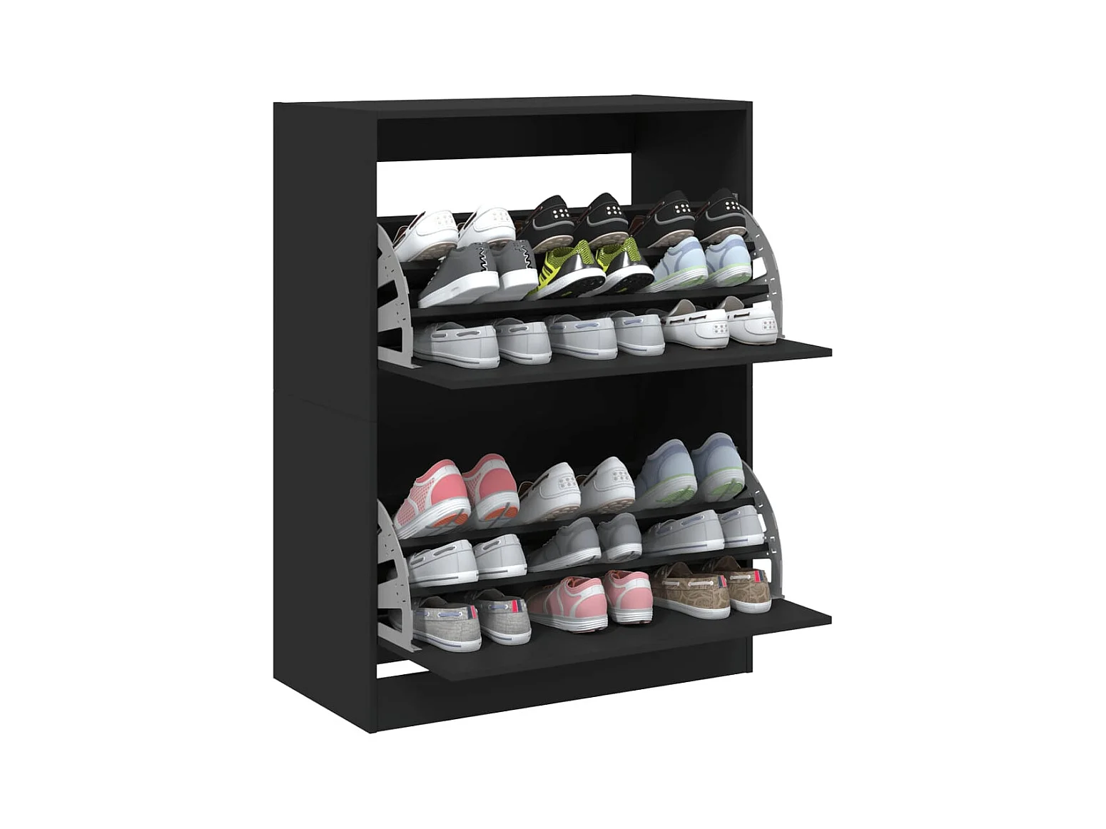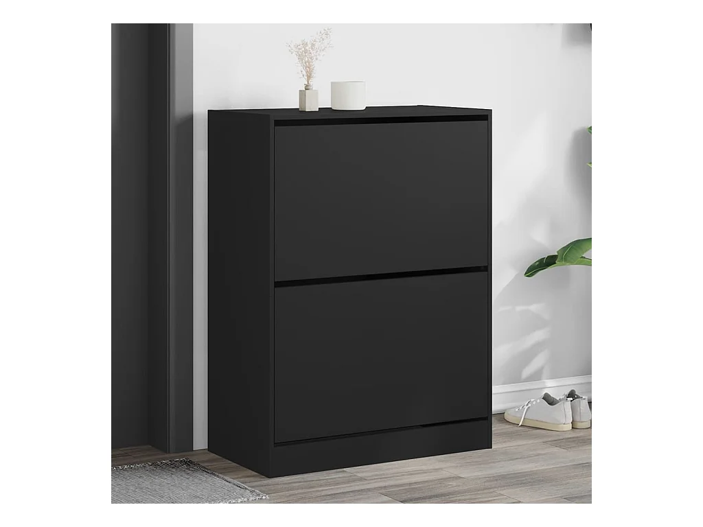 Armoire à chaussures 2 tiroirs rabattables noir 80x42x108