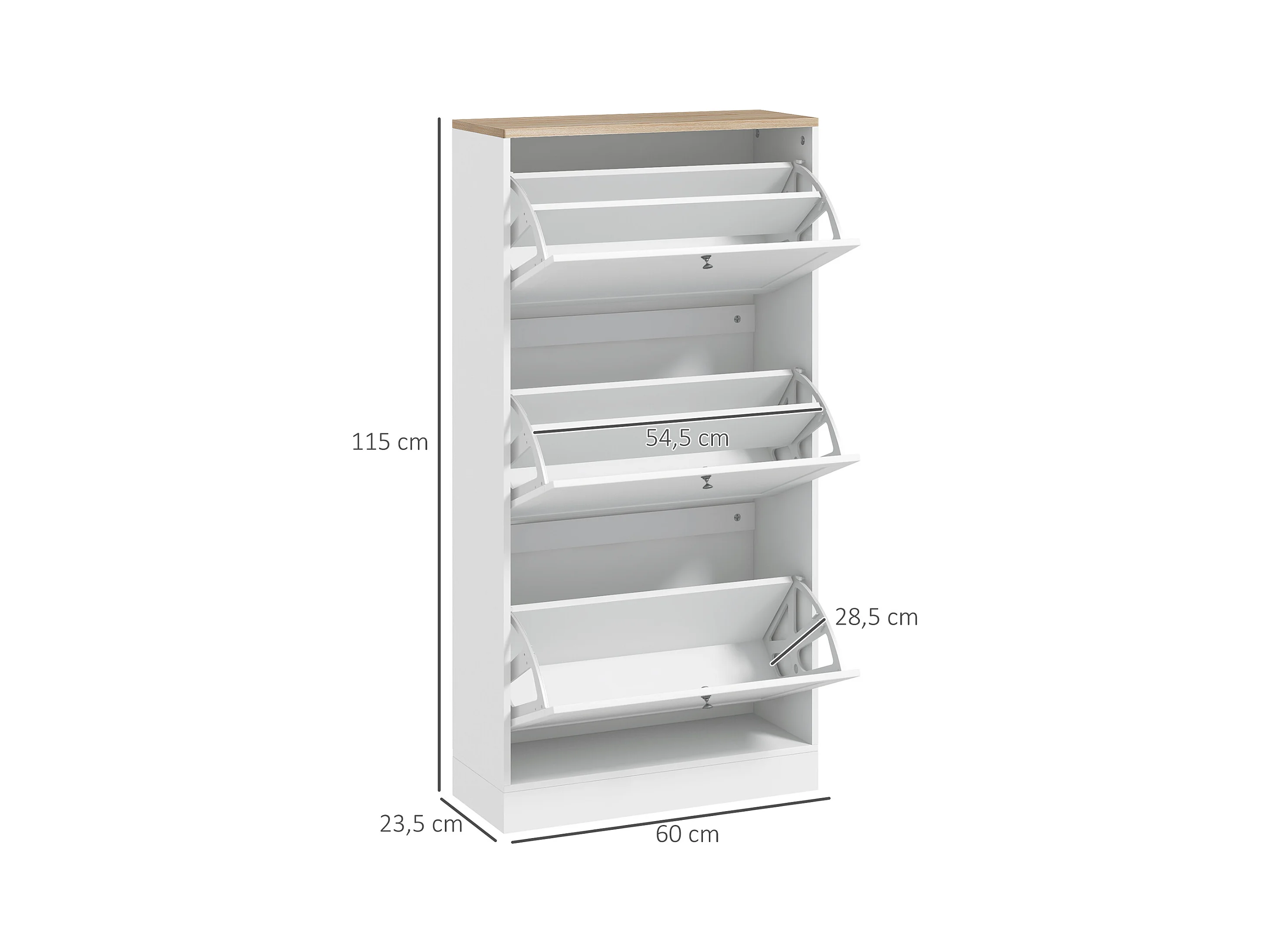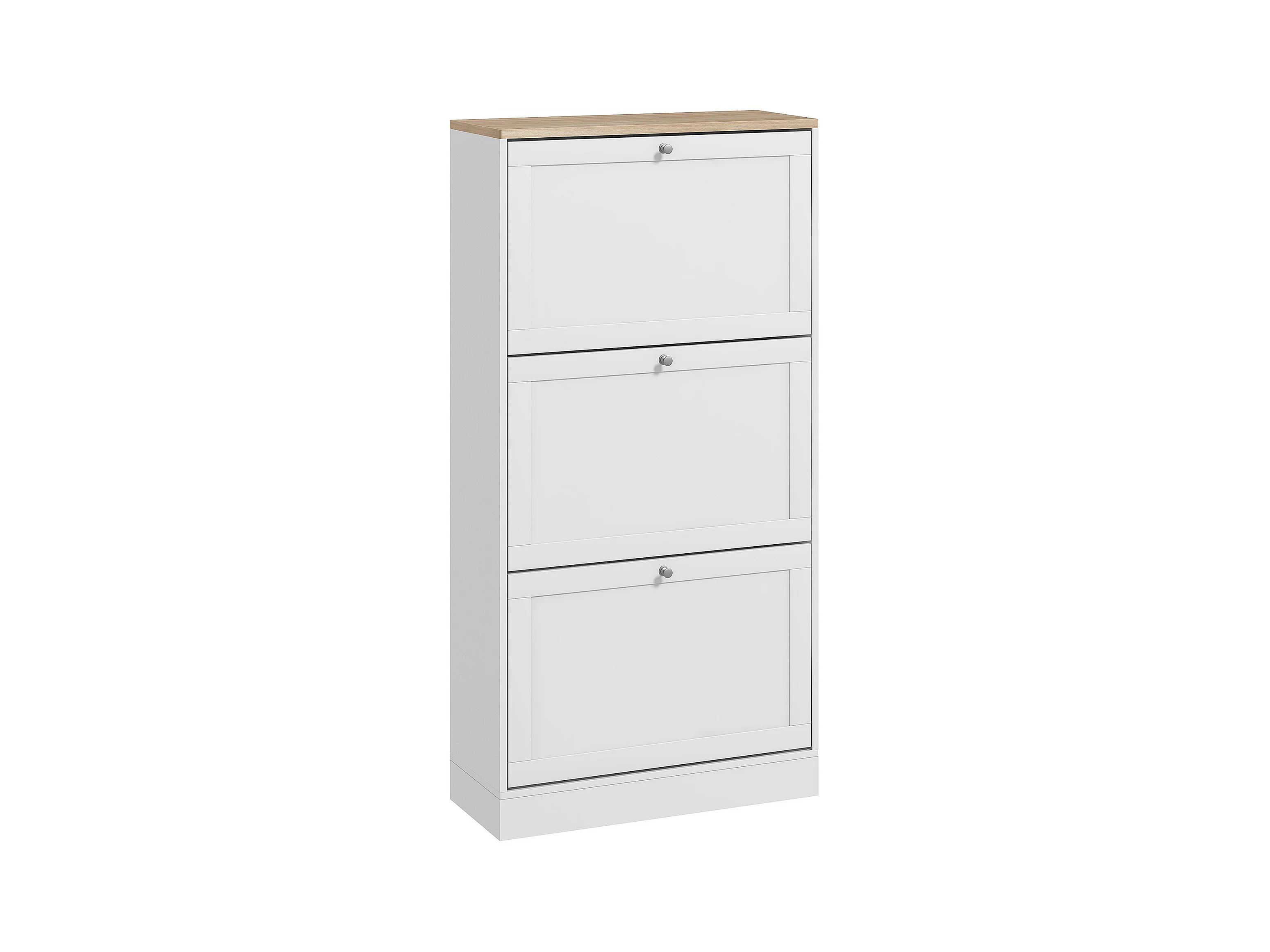 Armoire à chaussures 3 portes abattantes 2 compartiments panneaux particules blanc chêne
