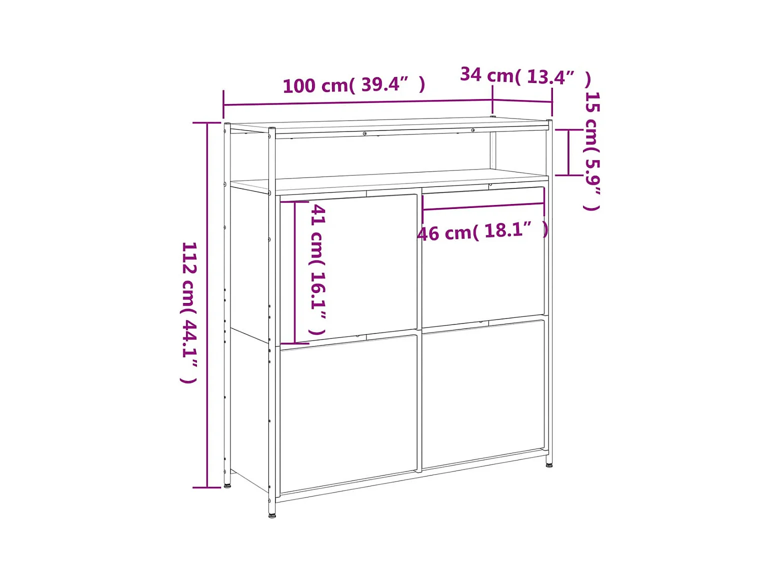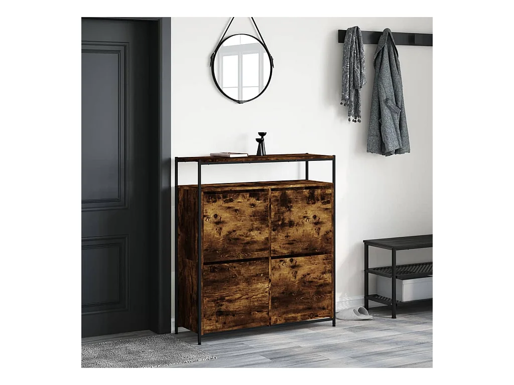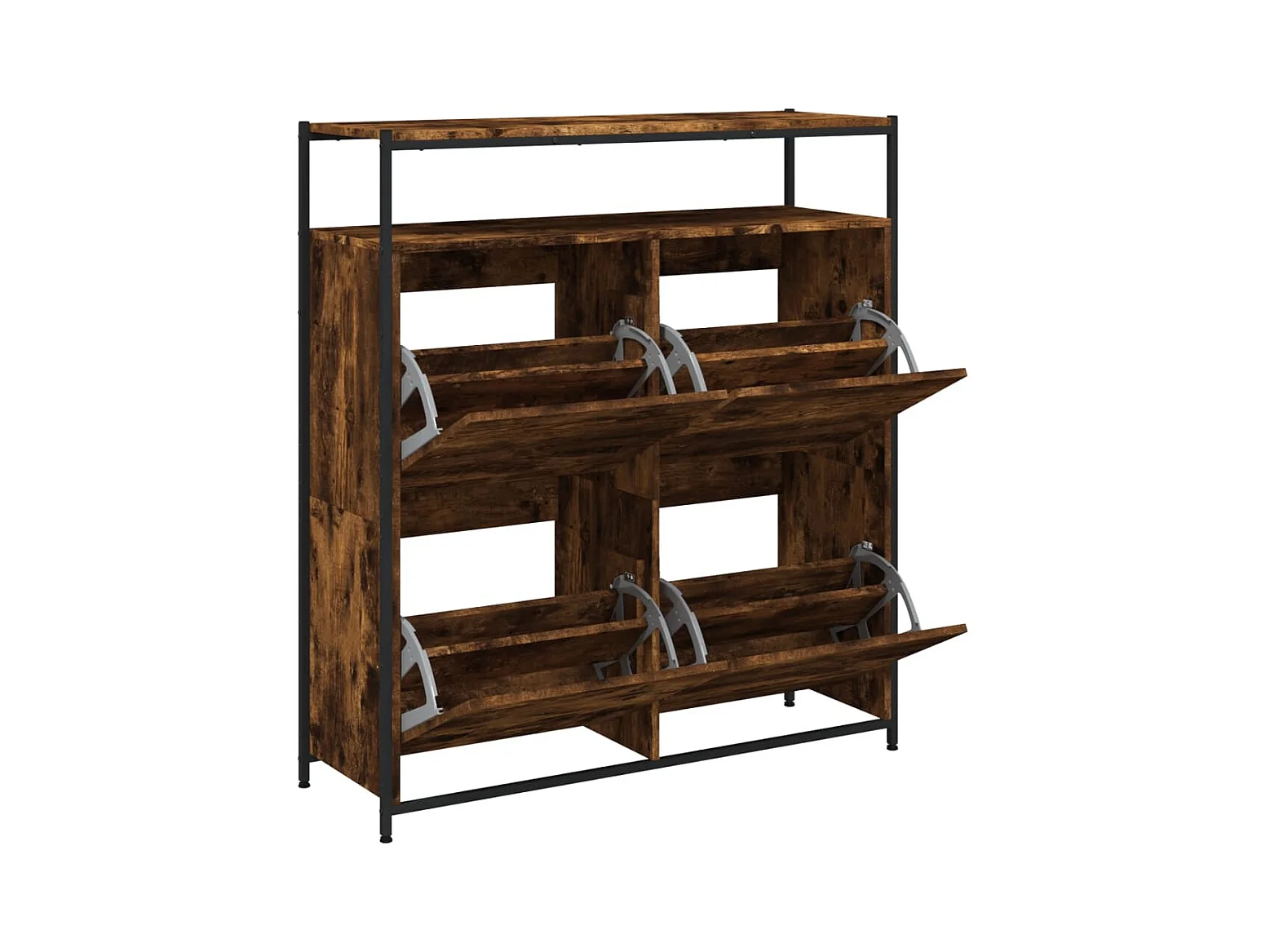 Armoire à chaussures 4 tiroirs rabattables chêne fumé