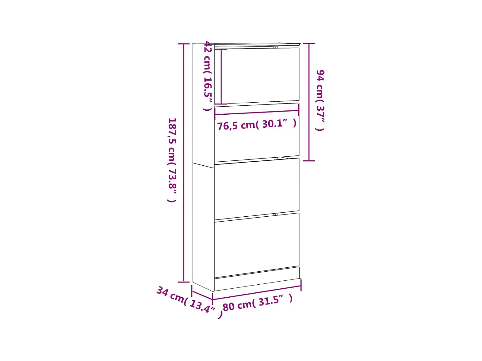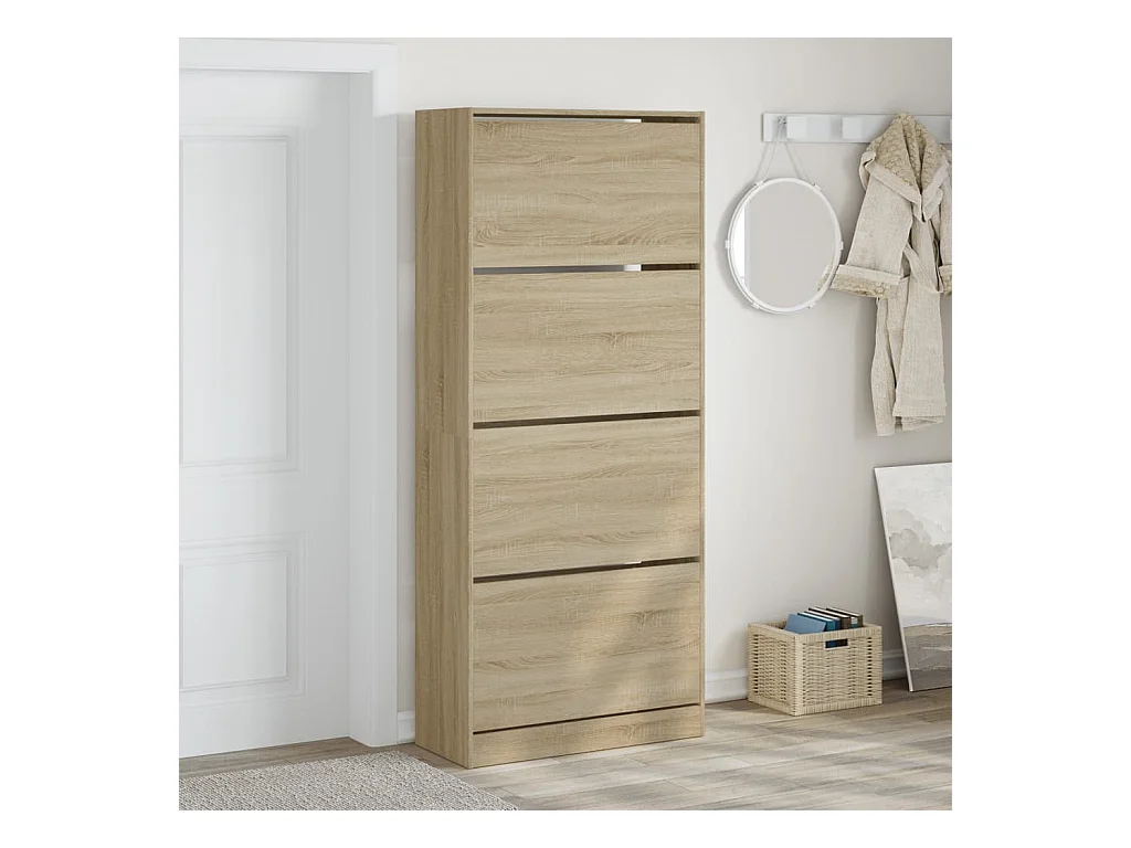Armoire à chaussures 4 tiroirs rabattables chêne sonoma