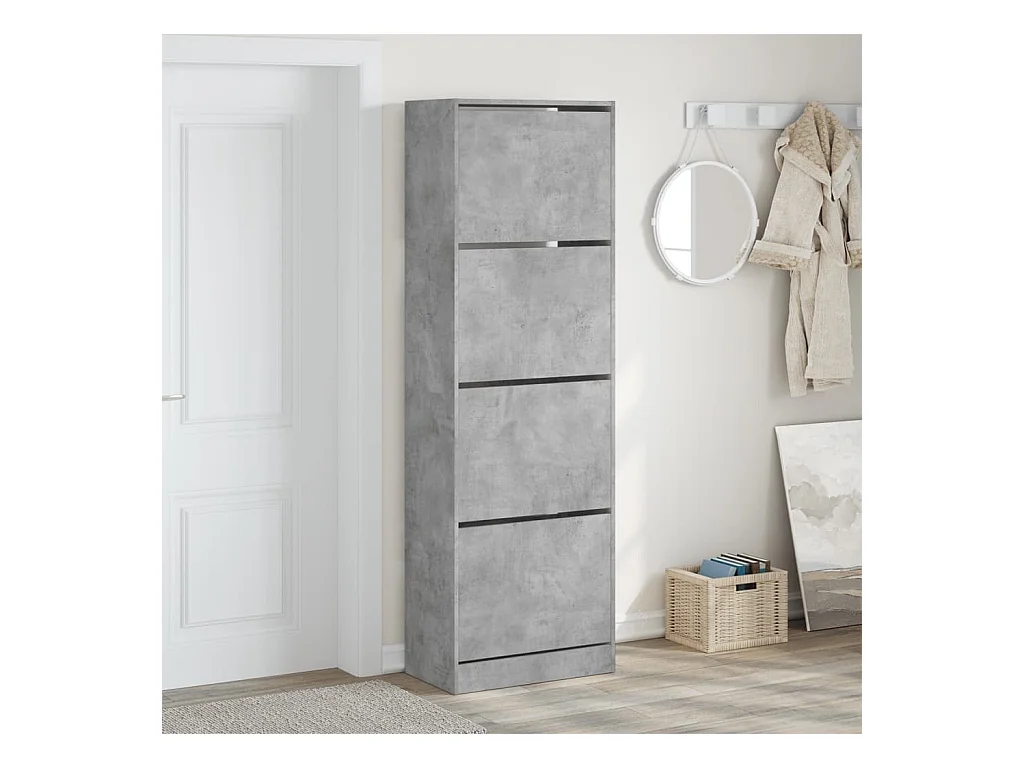 Armoire à chaussures 4 tiroirs rabattables gris béton