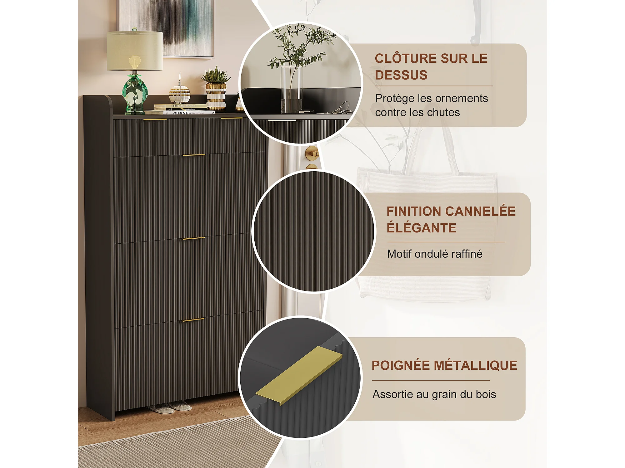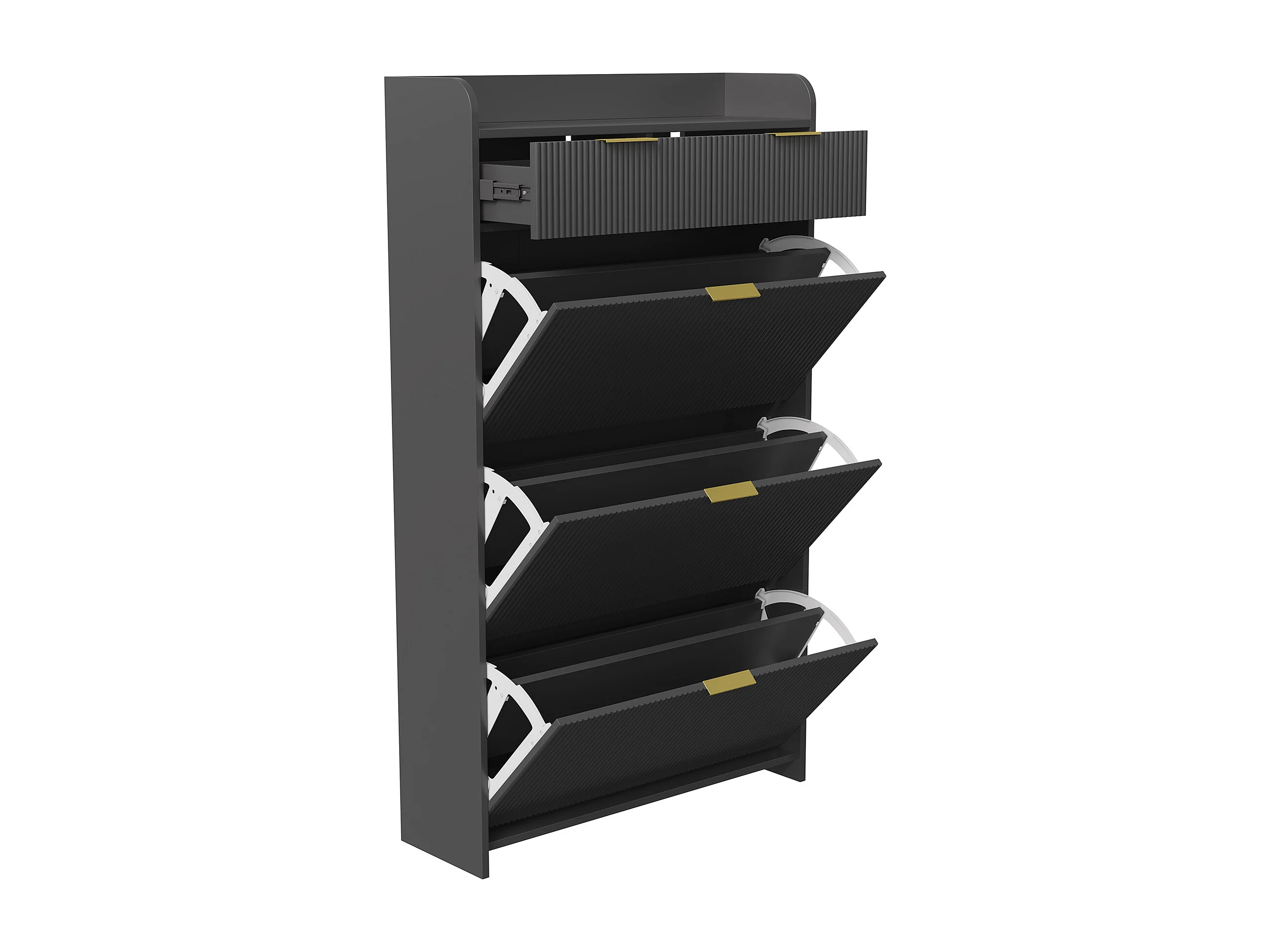 Armoire à chaussures avec 3 rabats et 1 tiroir-porte-chaussures Shoemaker étroit-anti-inclinaison dispositif-porte-chaussures pour salon couloir-noir