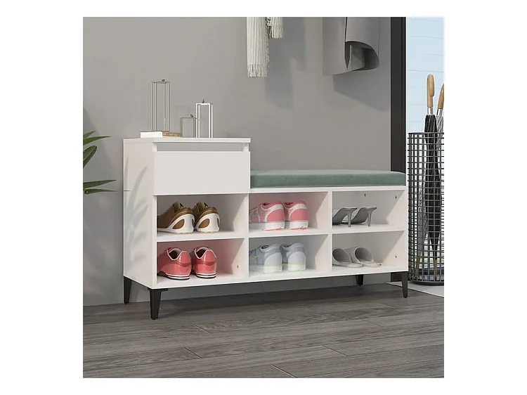 Armoire à chaussure Blanc brillant 102x36x60 Bois ingénierie