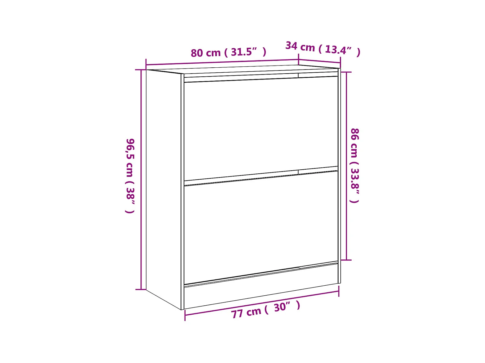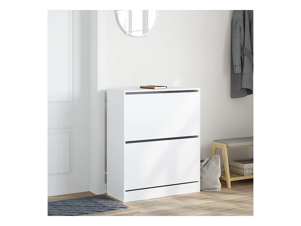 Armoire à chaussures 2 tiroirs rabattables blanc 80x34x116