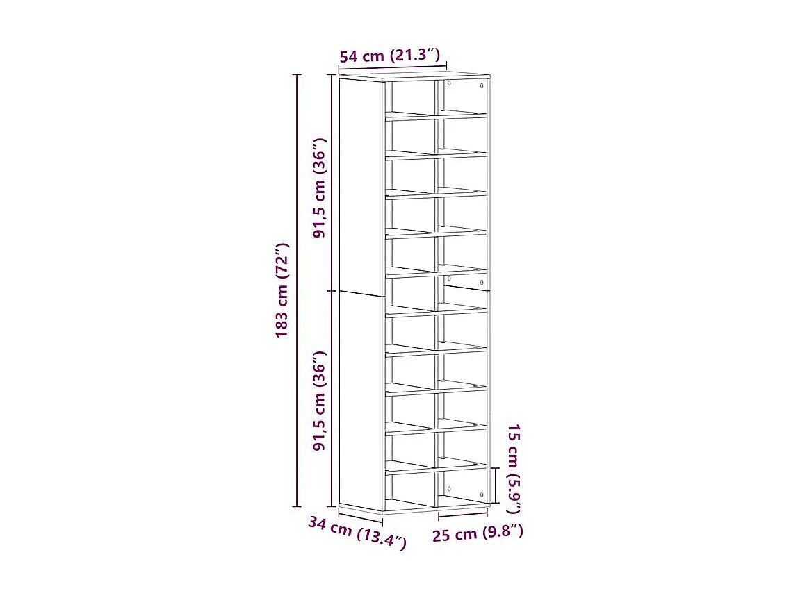 Armoire à chaussures chêne noir 54x34x183 bois d'ingénierie