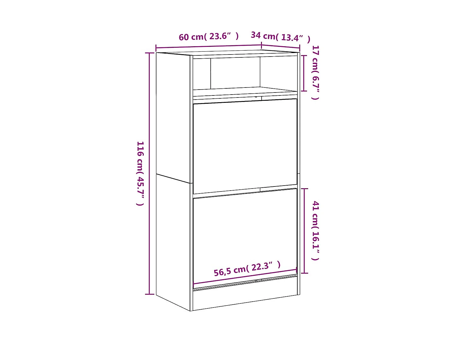 Armoire à chaussures 2 tiroirs rabattables chêne fumé