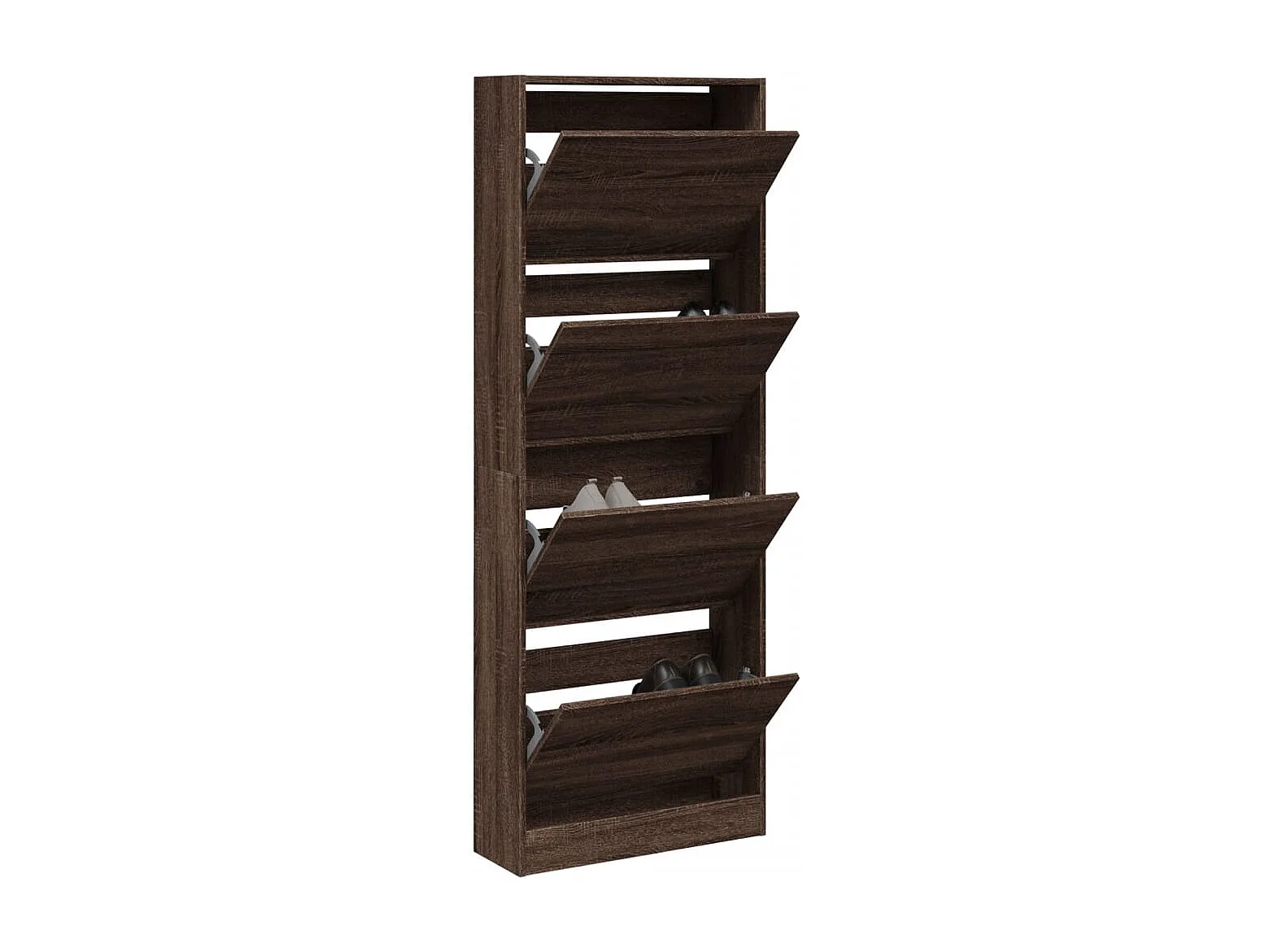 Armoire à chaussures en bois Livio L 60 x H 163cm – 4 porte rabattable-Noyer
