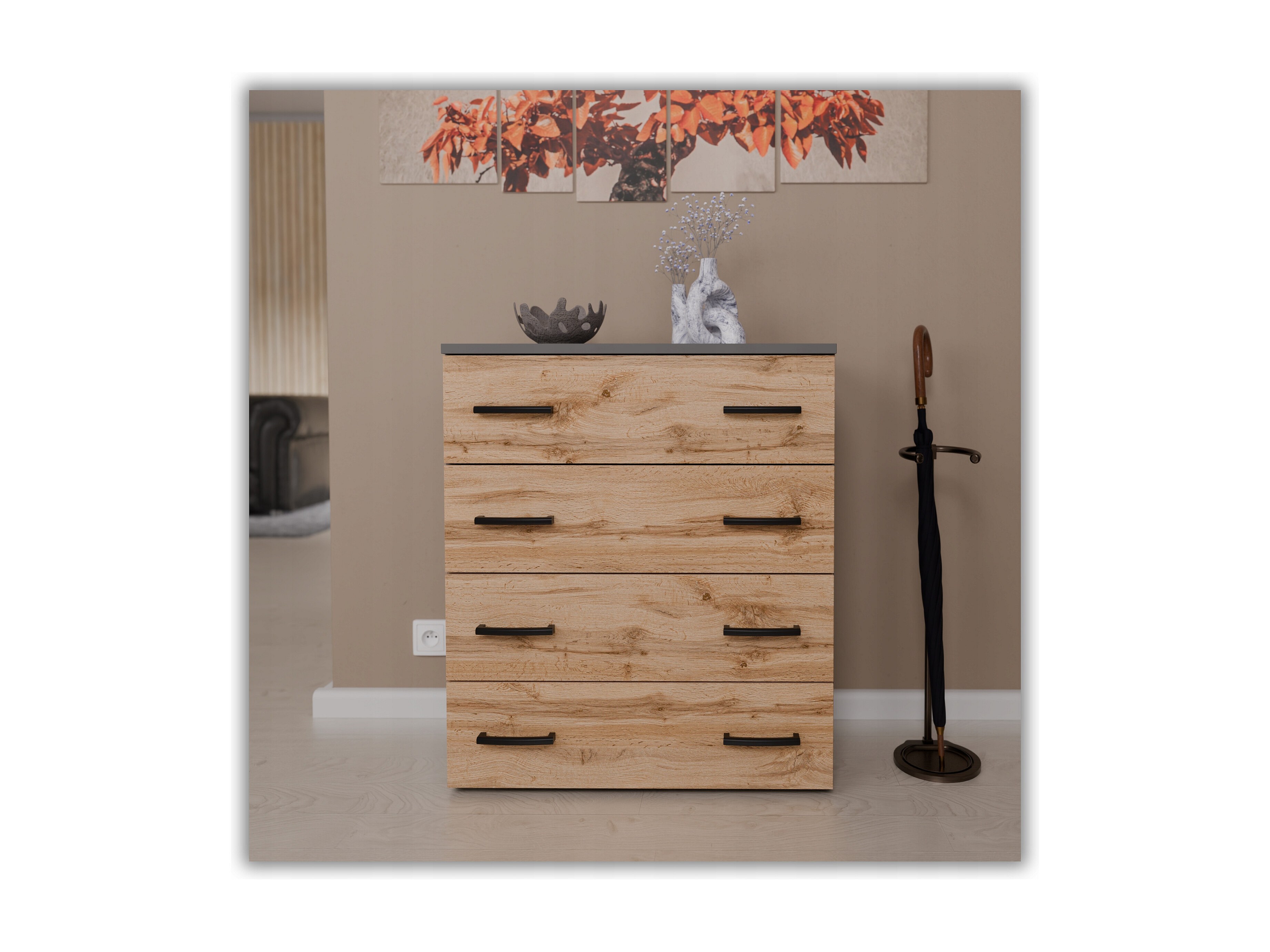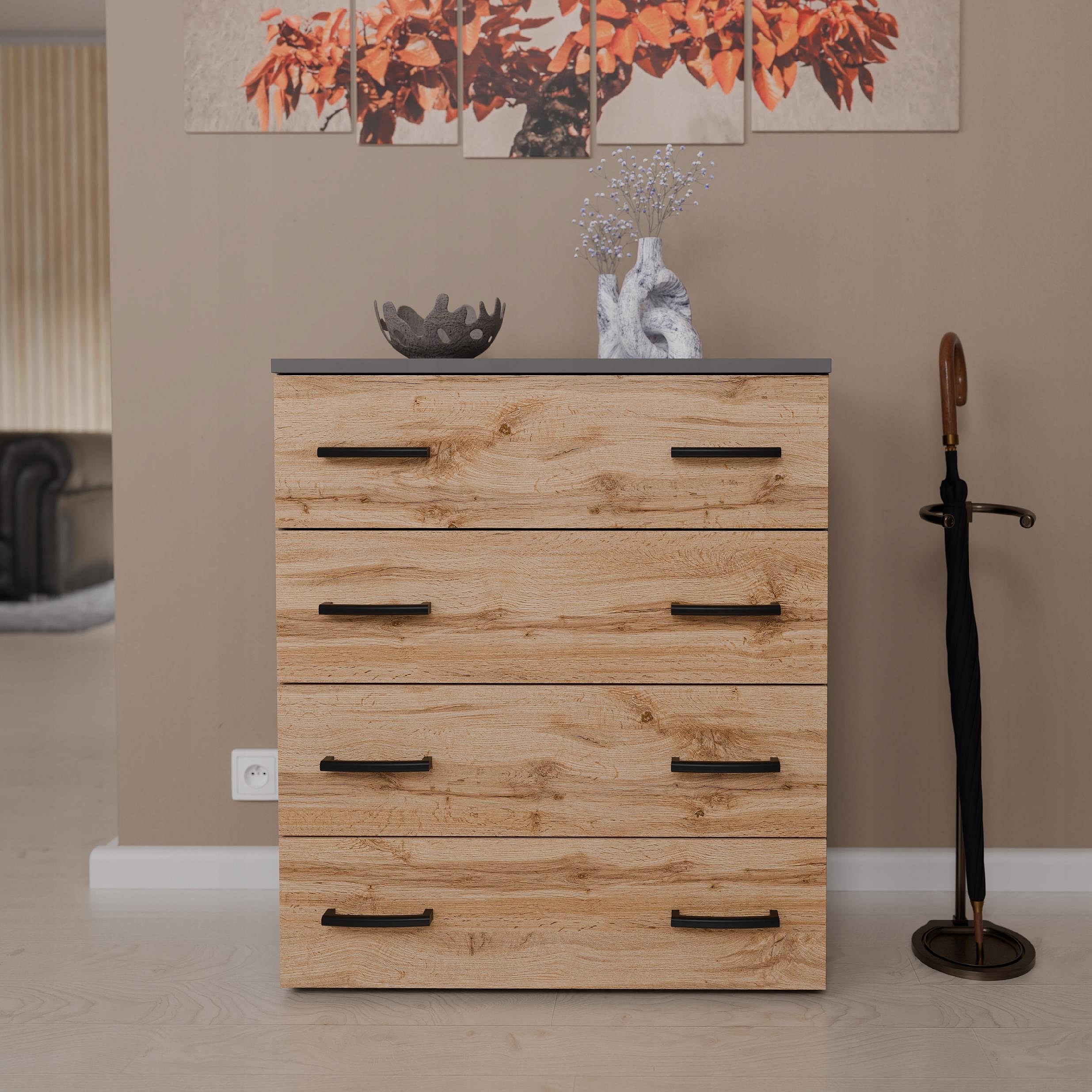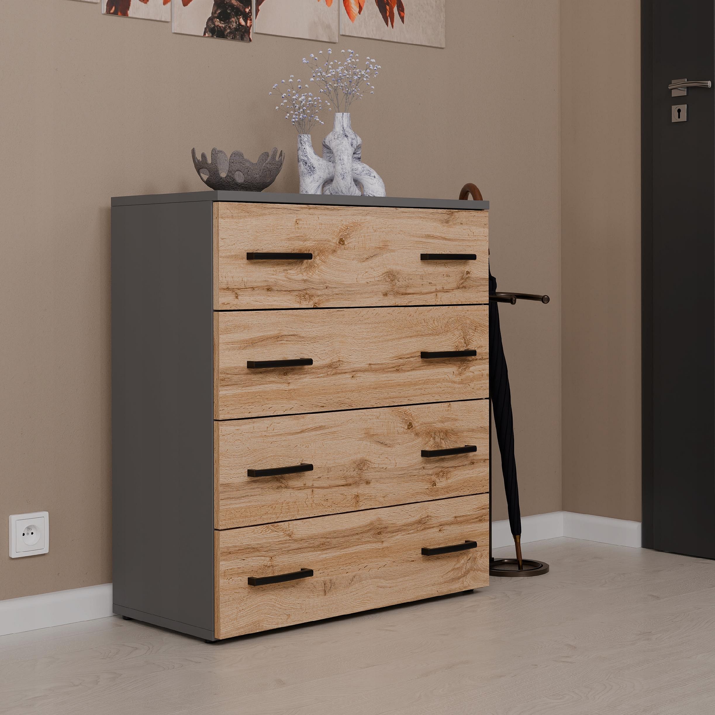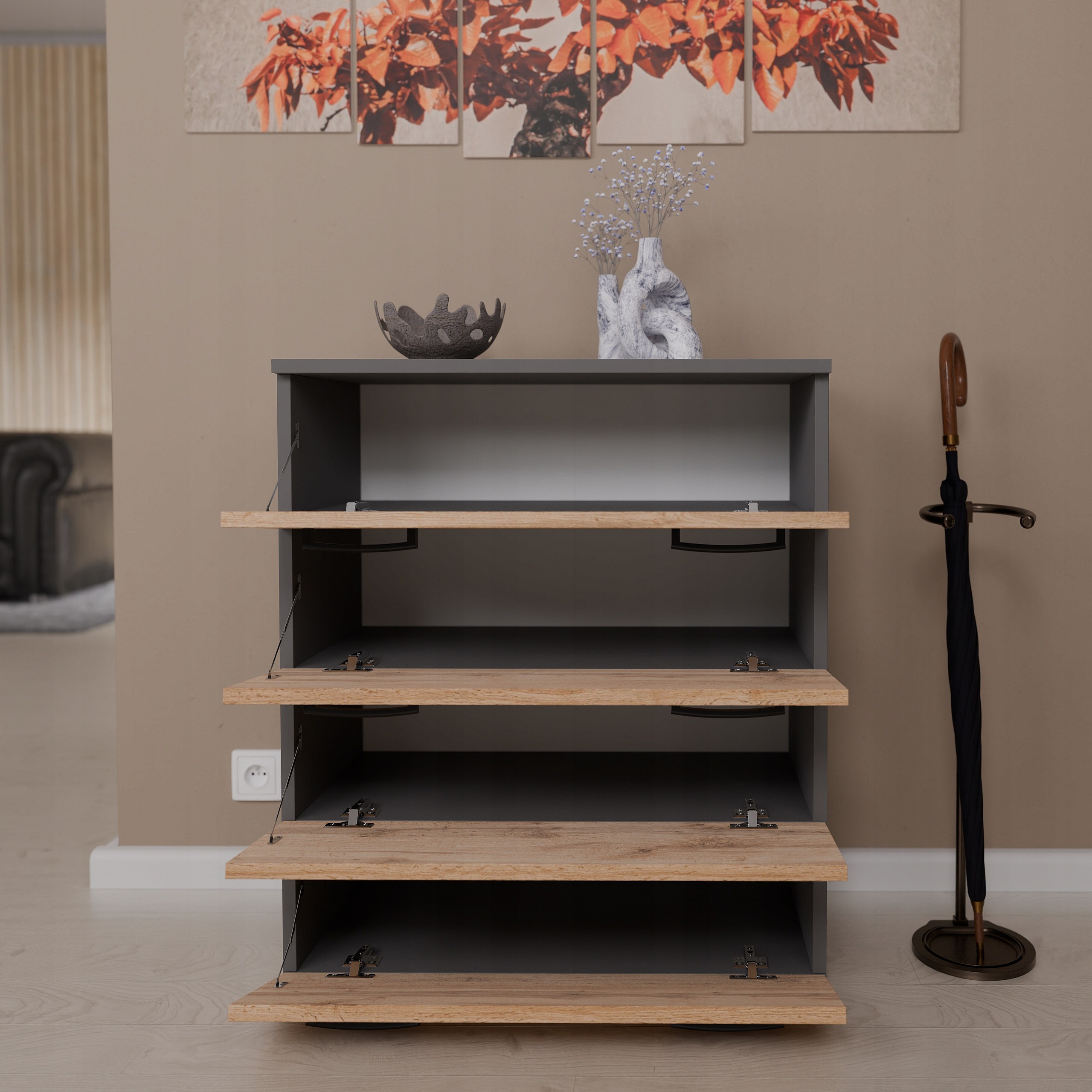 Armoire à chaussures en Gris +chêne wotan 71x82,9x35 cm – meuble de rangement avec 4 étagères