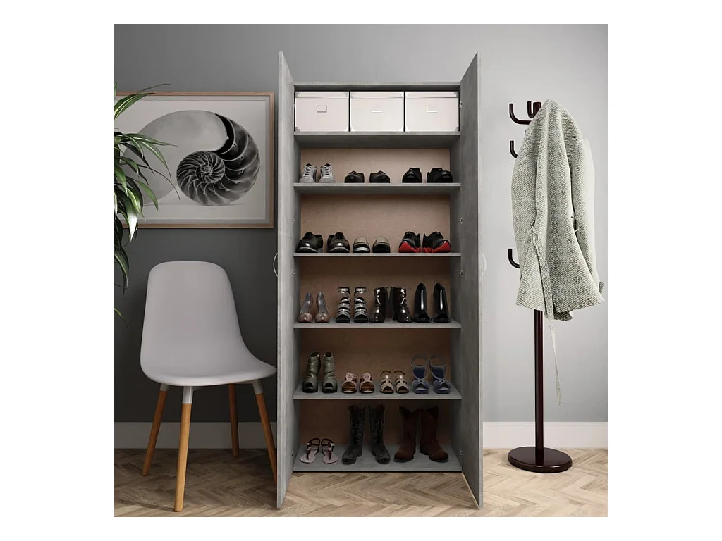 Armoire à chaussures Gris béton 80 x 35,5 x 180 cm Aggloméré
