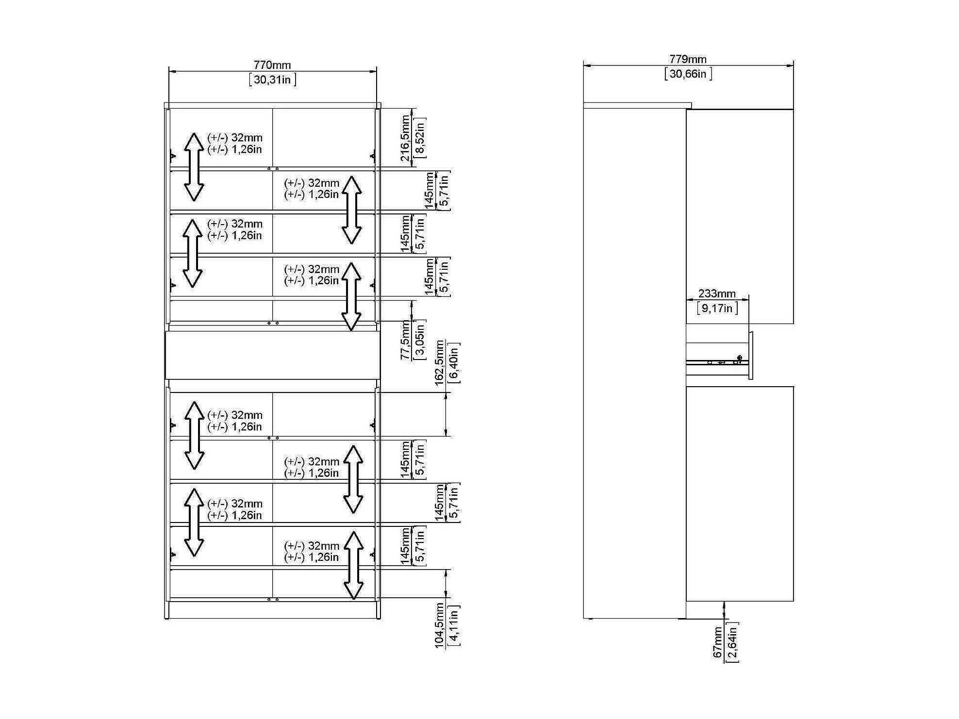 Armoire à chaussures Jangmi, un tiroir, 40x80,4x191,7h cm Chêne brun, meuble à chaussures