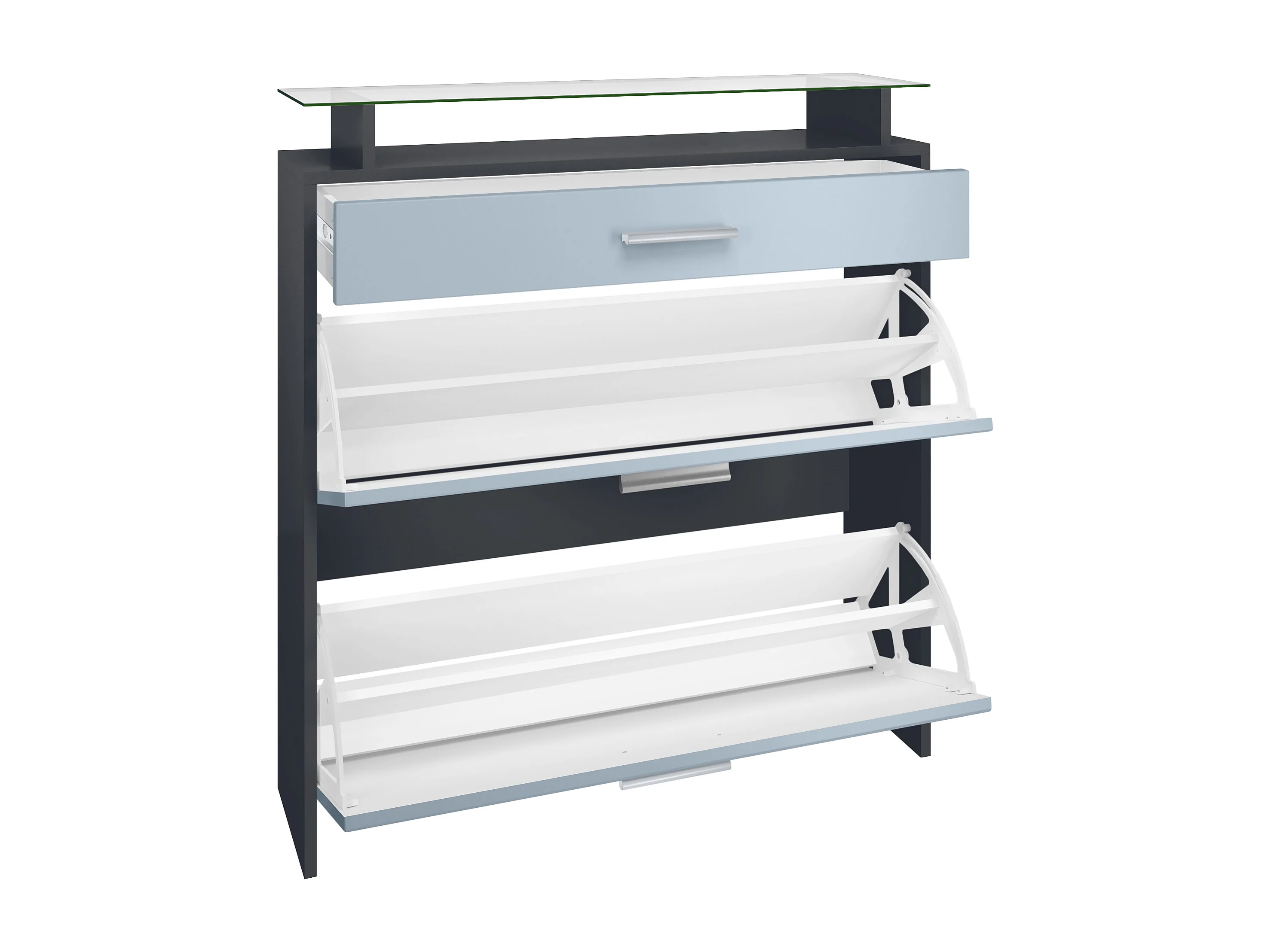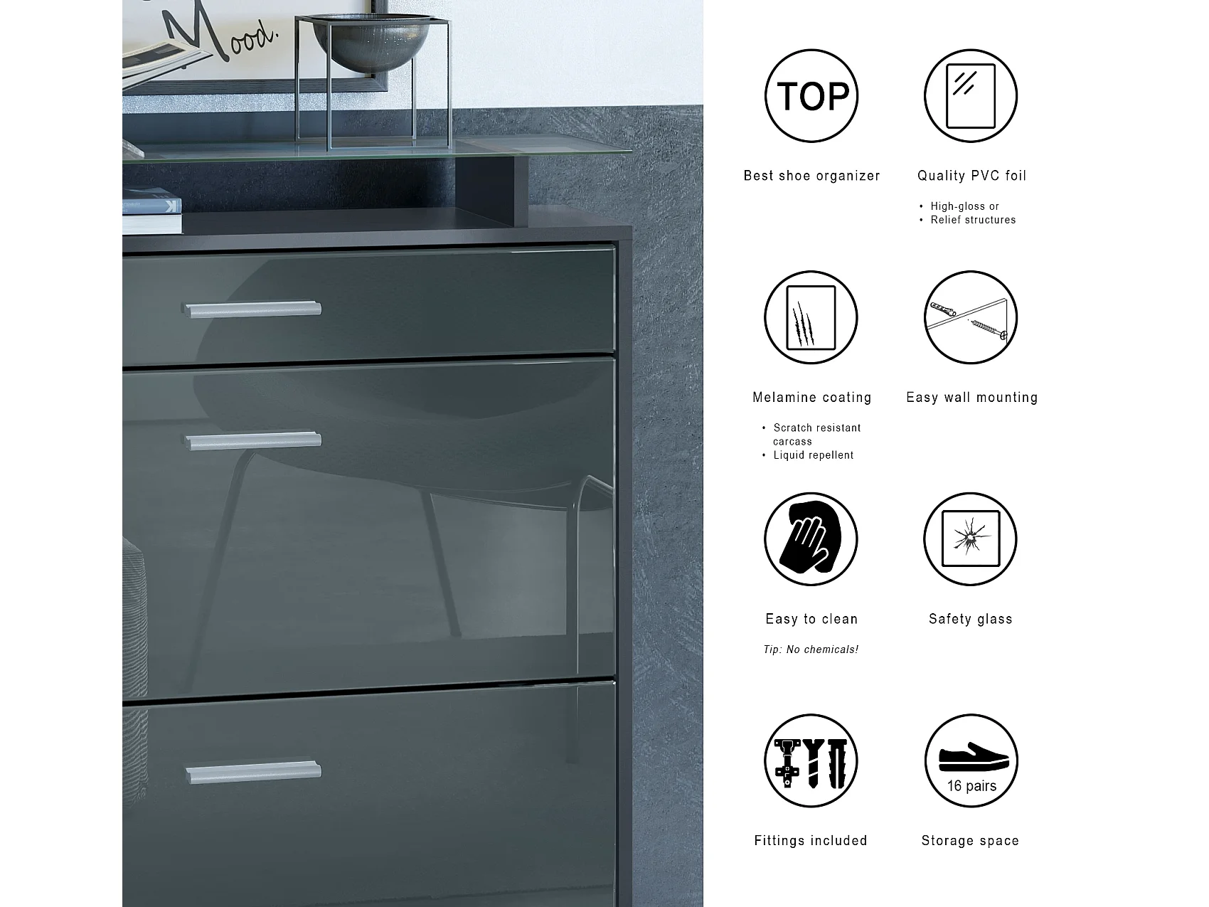 Armoire à chaussures Malea de , anthracite mat/noir mat y compris LED - basculeur à chaussures suspendu pour 16 paires de chaussures (89 x 96 x 23 cm)