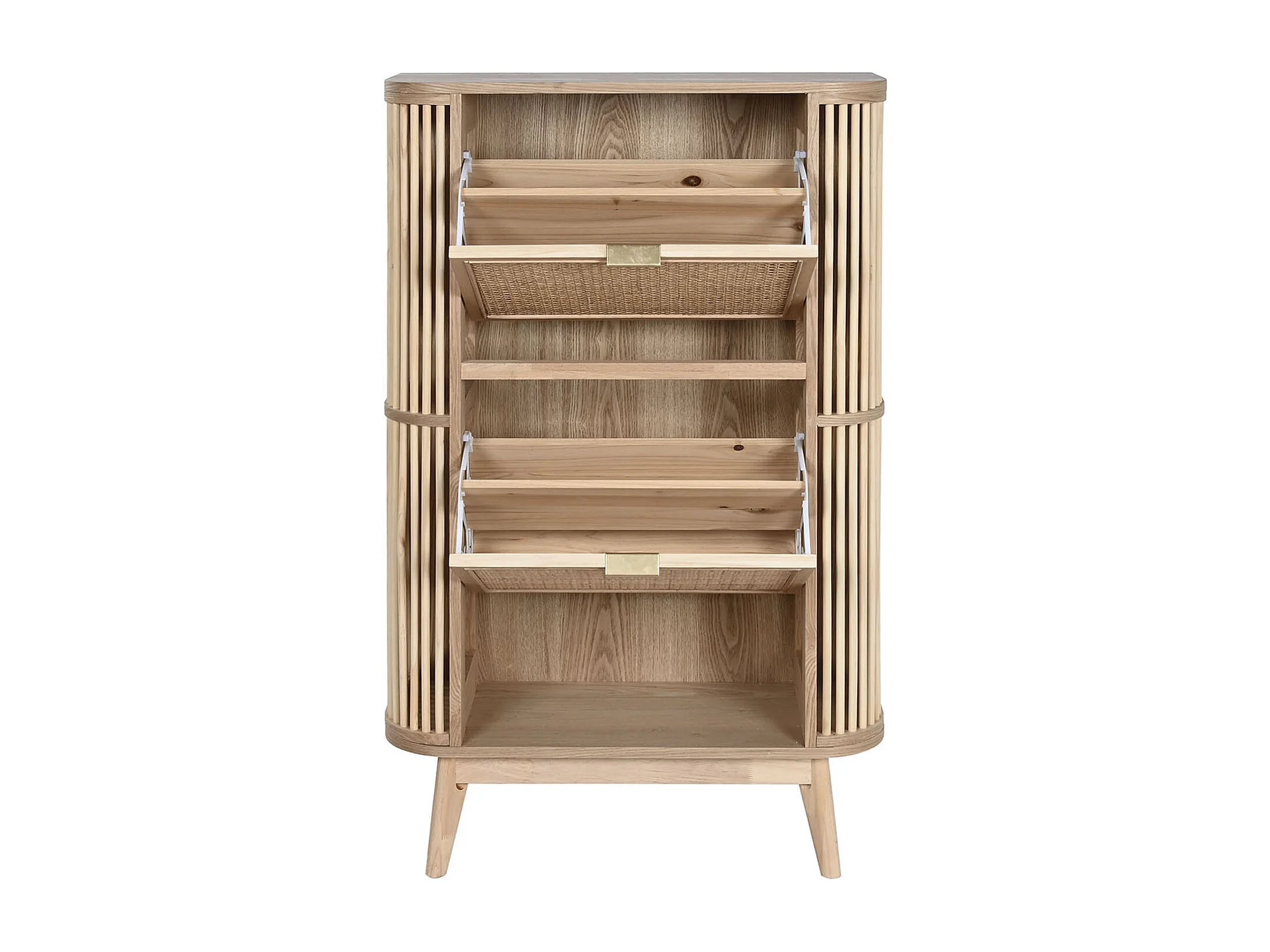 Armoire à chaussures, meuble à chaussures en bois de rotin coloris naturel - longueur 70 x profondeur 29 x Hauteur 115 cm