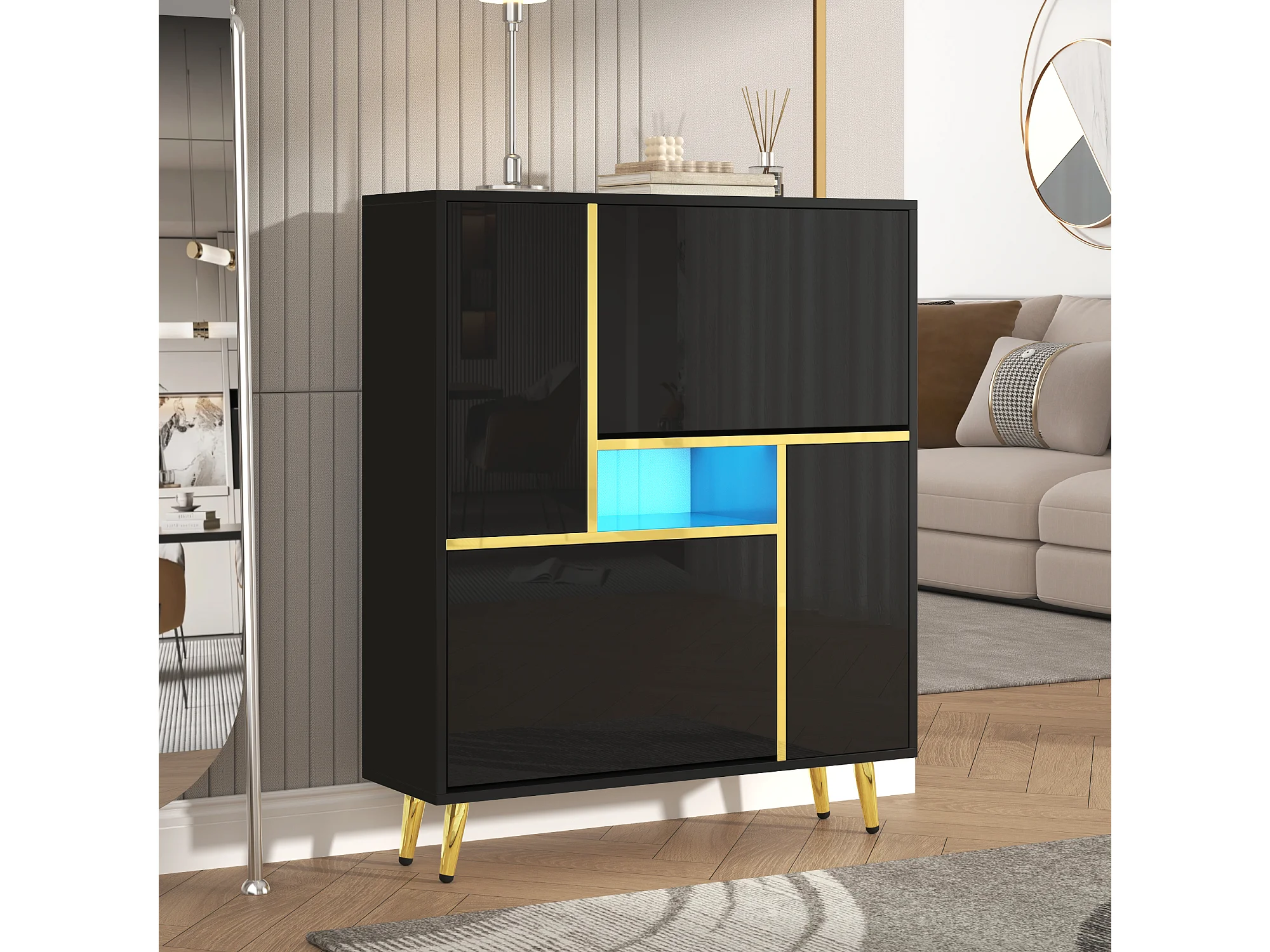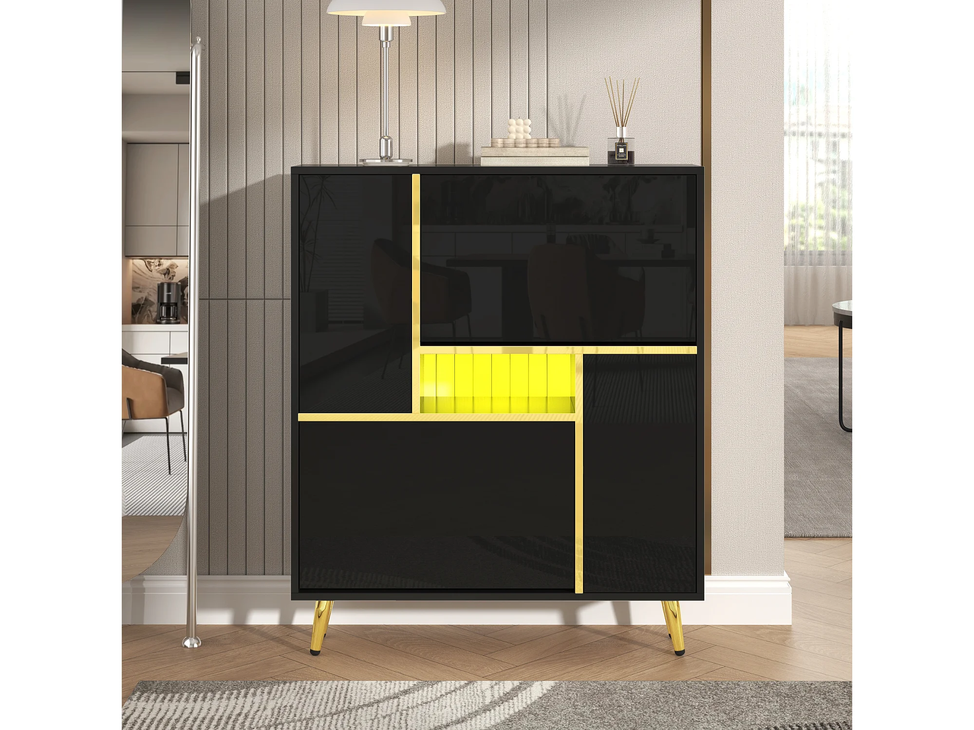 Armoire à Chaussures Moderne avec Lumière LED 16 Couleurs et Façade Haute Brillance, Noir, Design Élégant (80 x 25 x 96 cm)