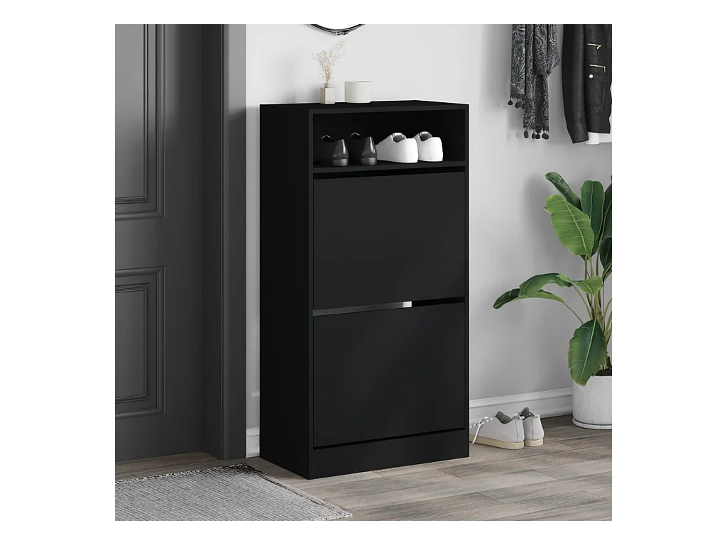 Armoire à chaussures 2 tiroirs rabattables noir 80x34x116