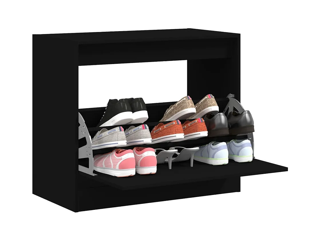 Armoire à chaussures noir 80x42x69 bois d'ingénierie