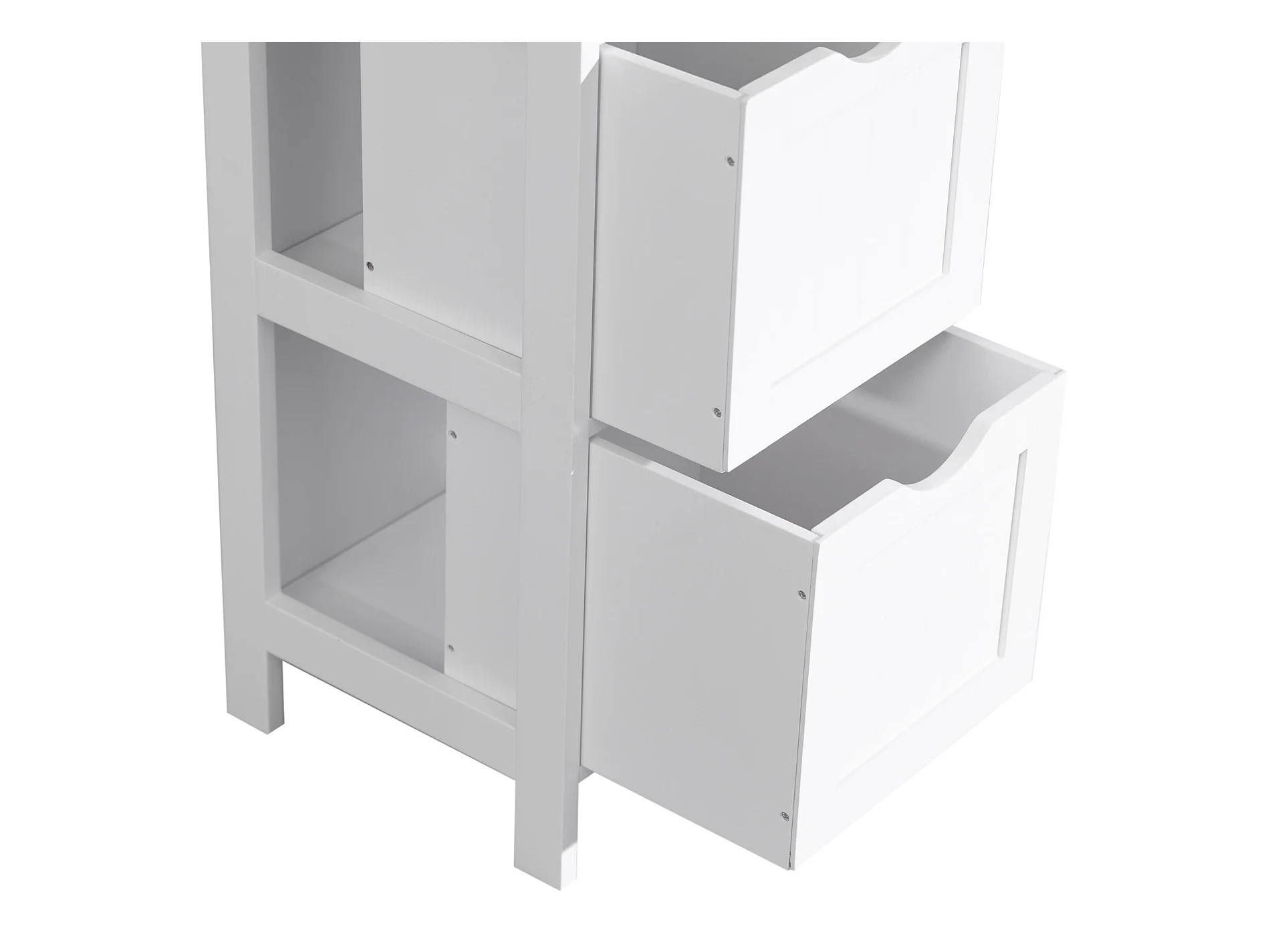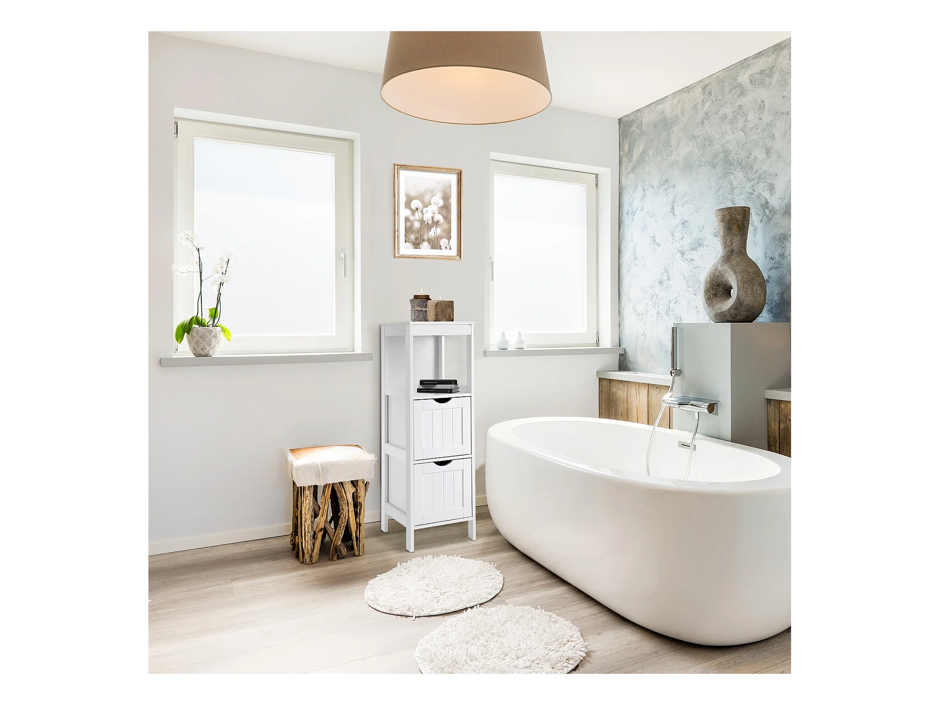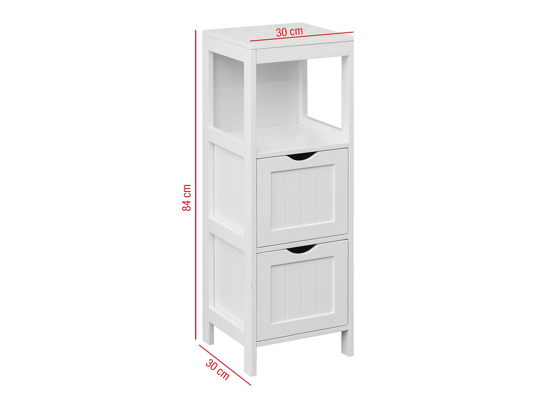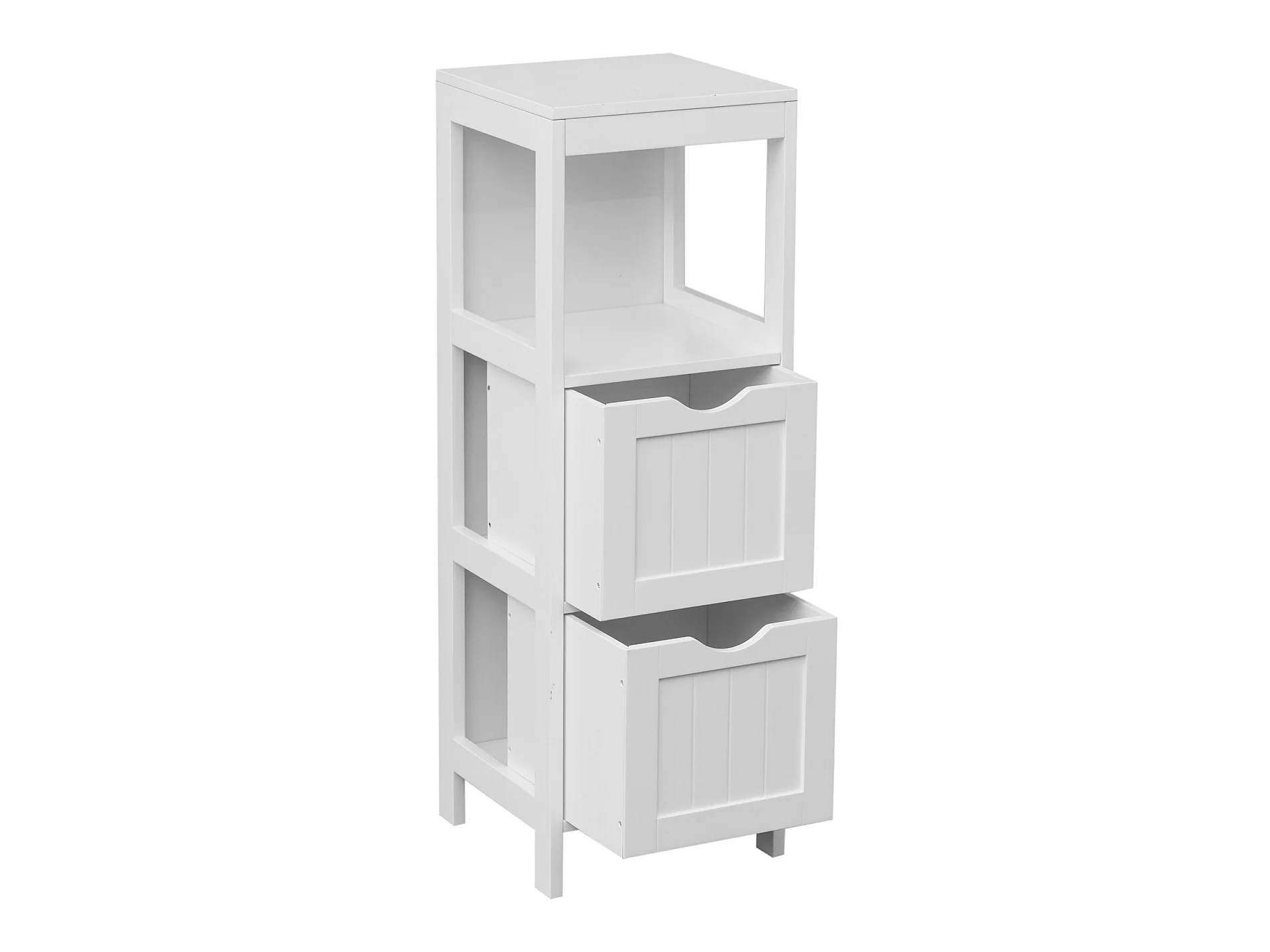 Armoire à colonnes en bois blanc avec 2 tiroirs et une étagère