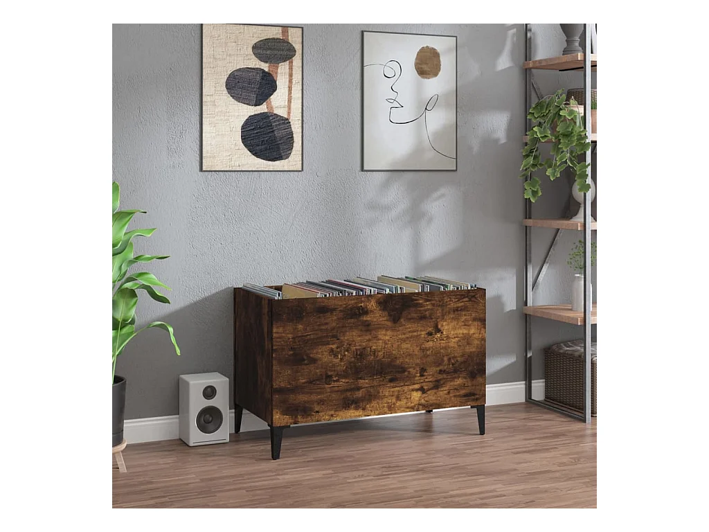 Armoire à disques chêne fumé 85x38x48 cm bois d'ingénierie FR91379