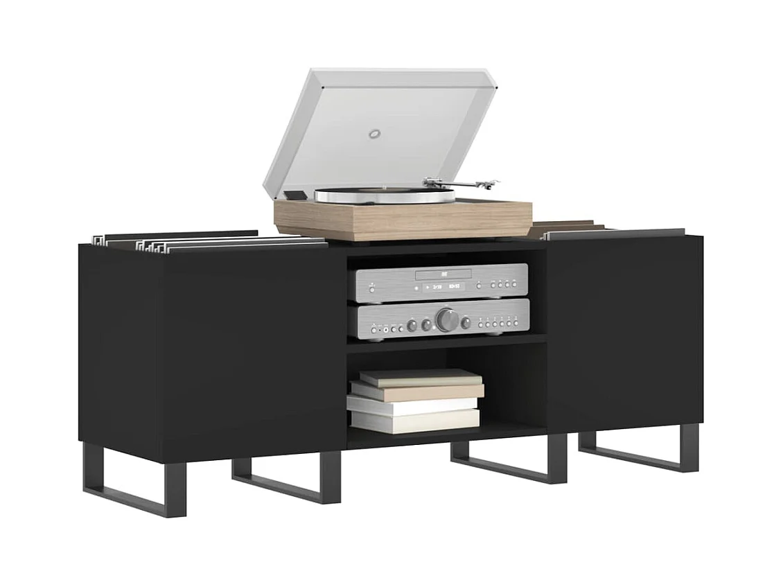 Armoire à disques noir 121x38x48 cm bois d'ingénierie