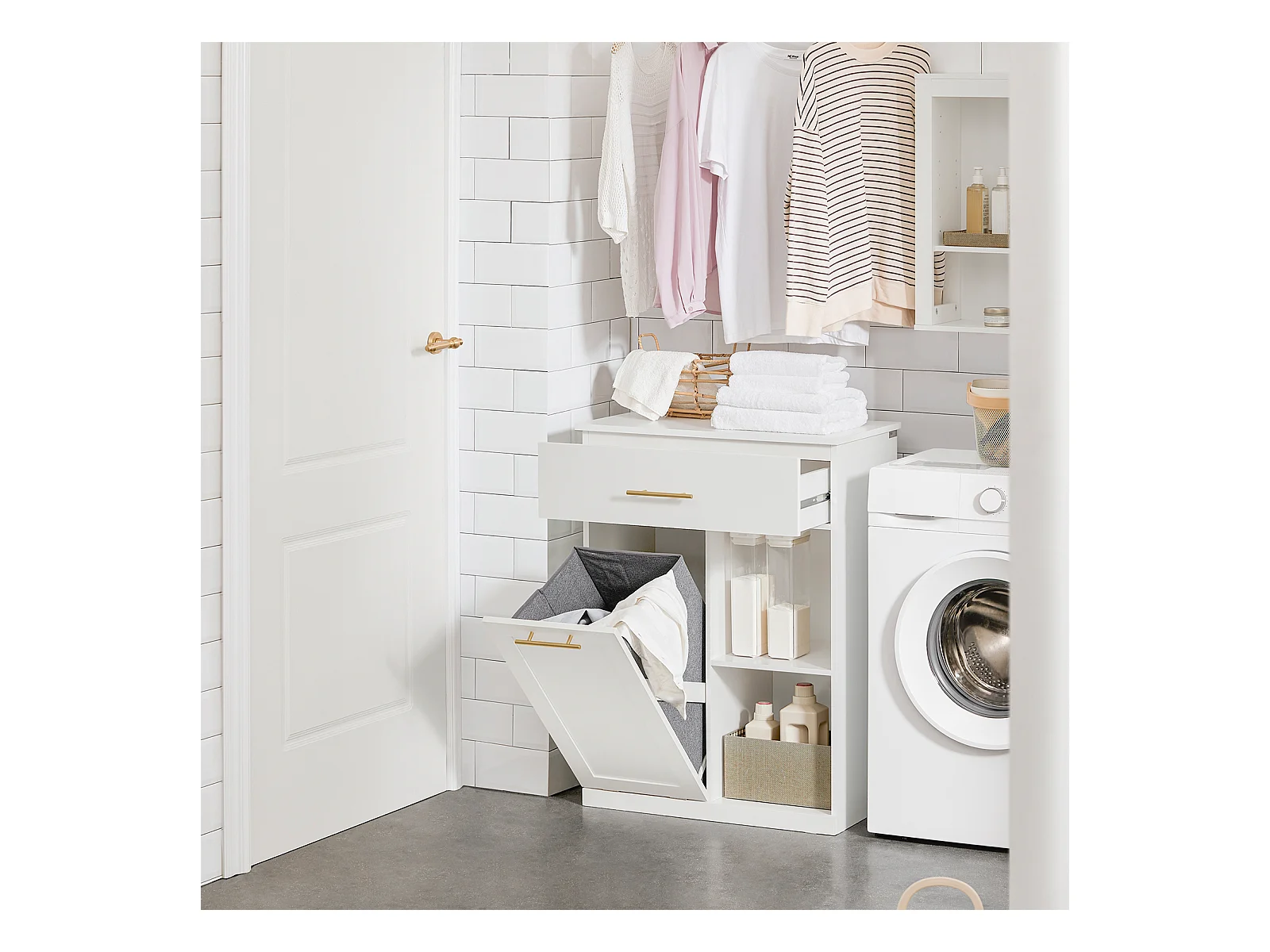 Placard Meuble Bas De Salle De Bain Avec 1 Tiroir, 1 Panier À Linge 3 Panier, Sacs À Linge, BZr77-w