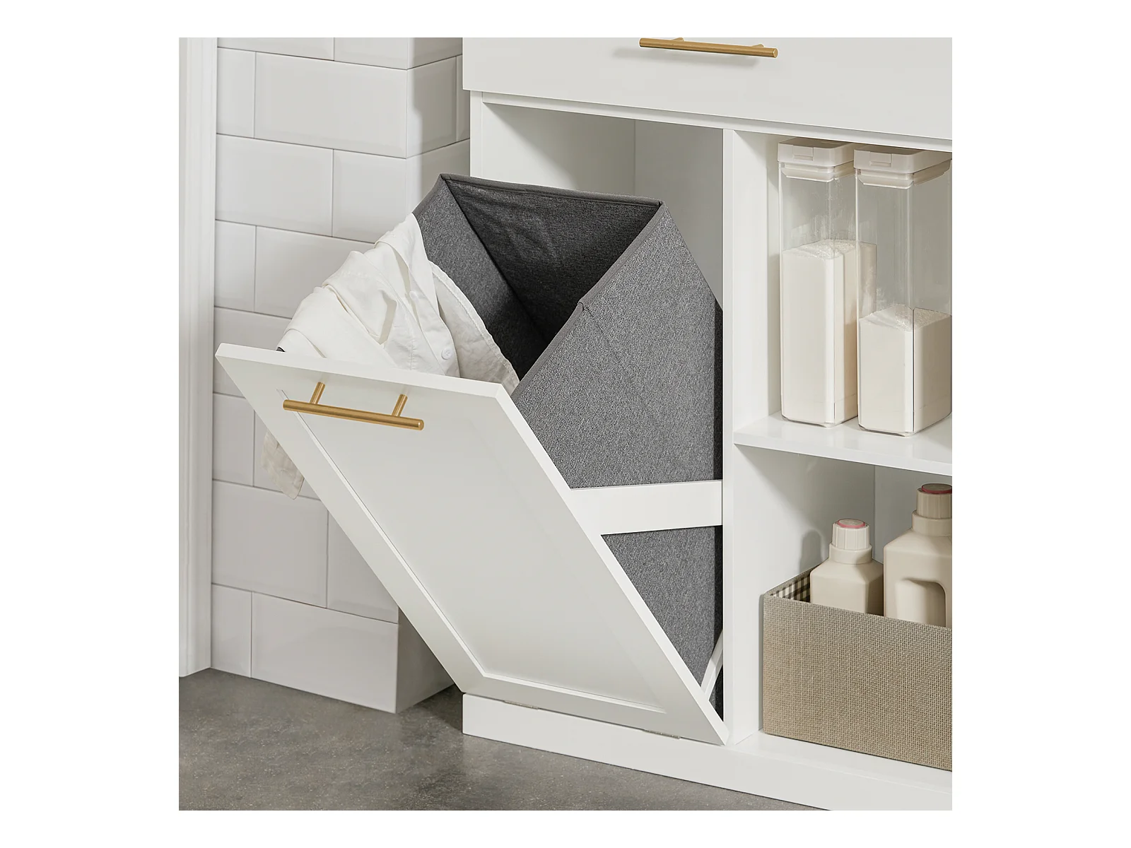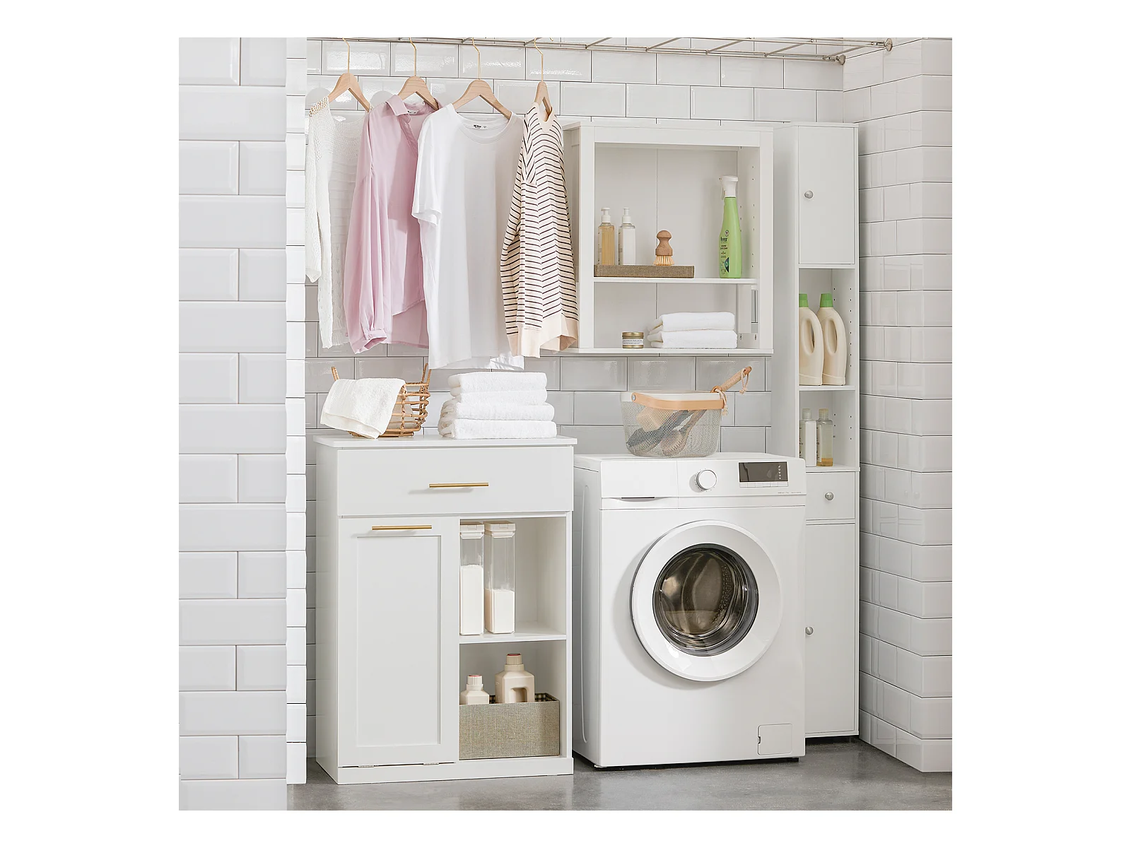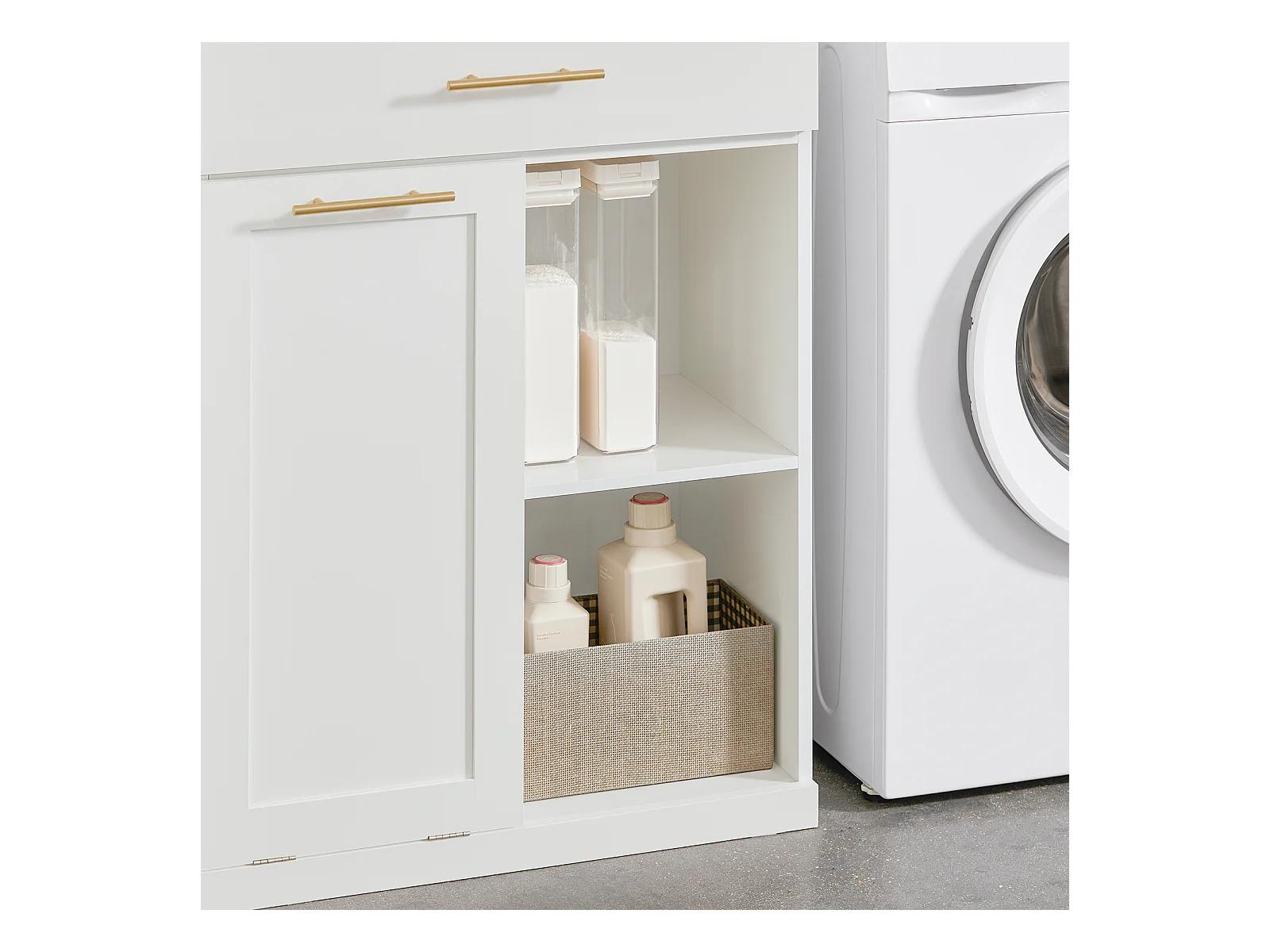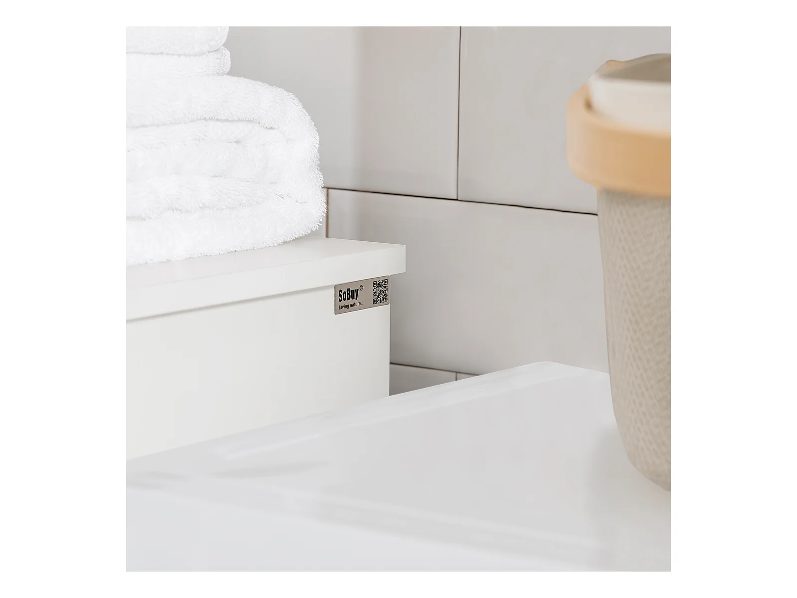 Armoire À Linge Avec Bac À Linge Pliable Meuble Bas Commode Pour Salle De Bain, BZr66-w