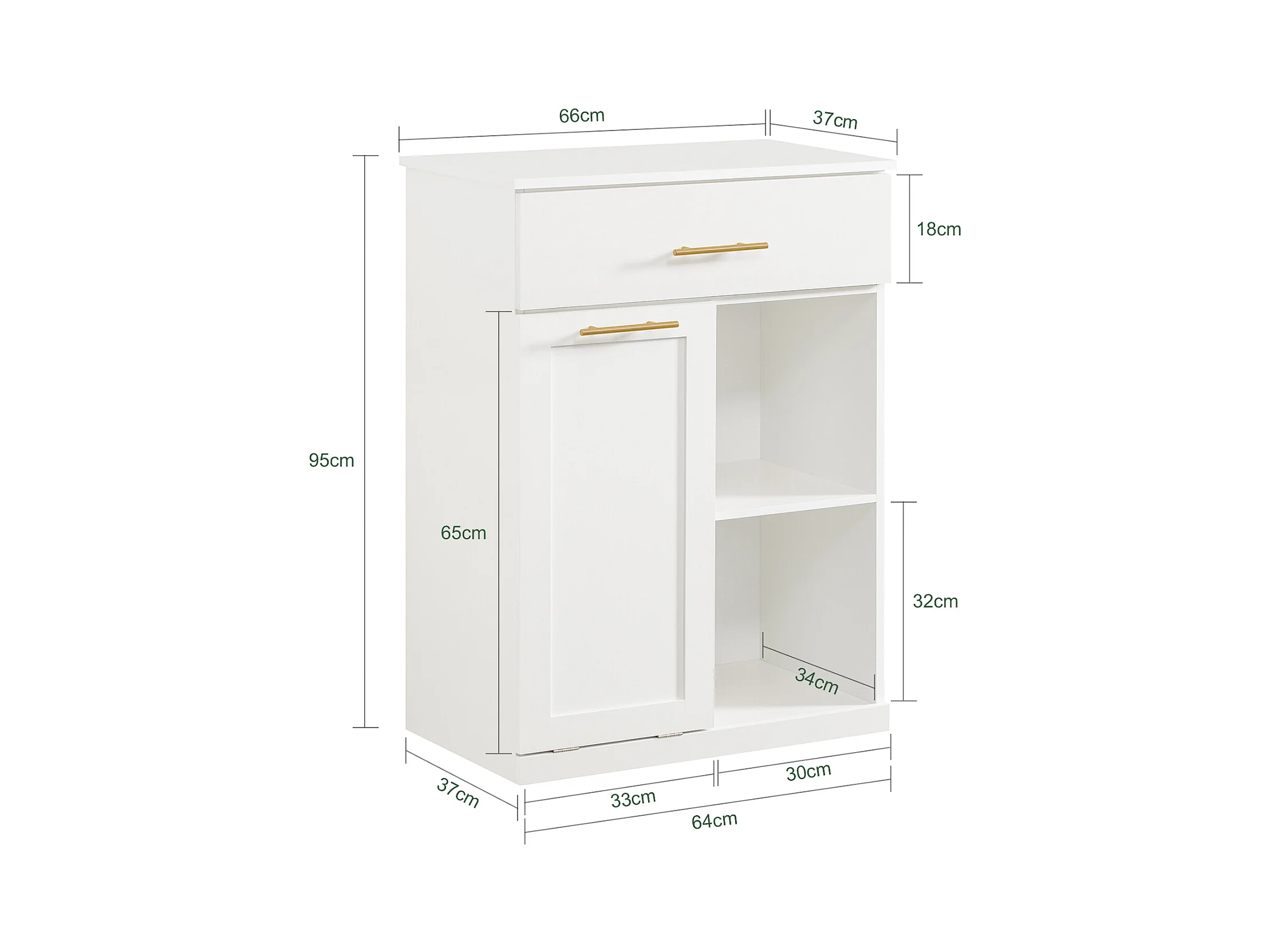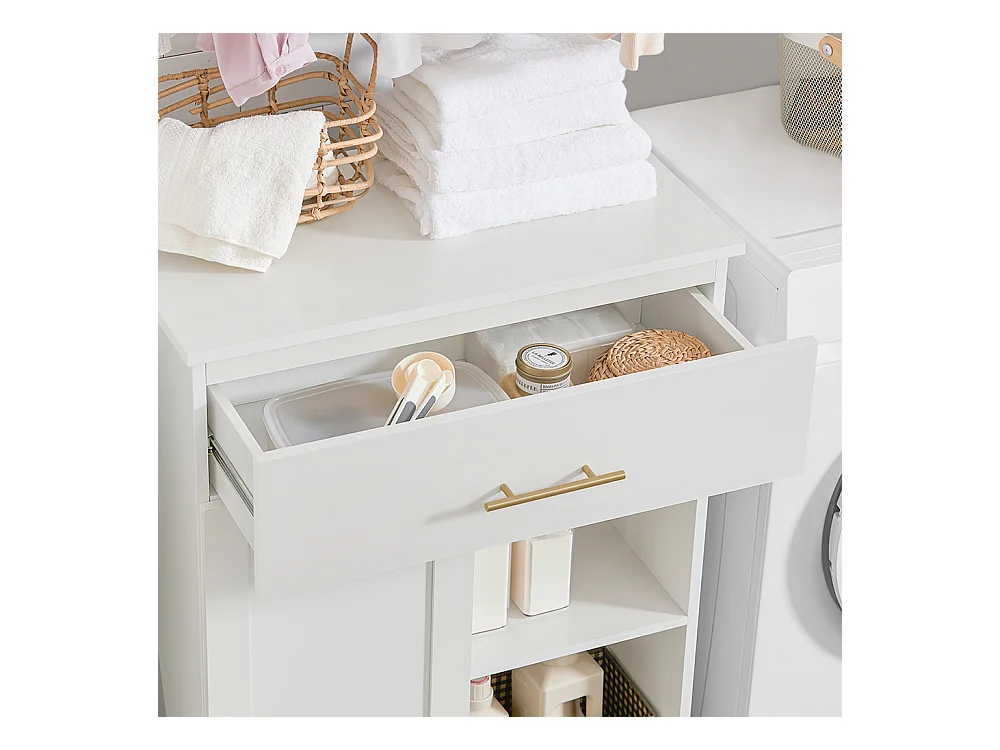 Meuble Bas de Salle de Bain Armoire Toilette avec 1 tiroir et 1 Panier à Linge, BZR21-W