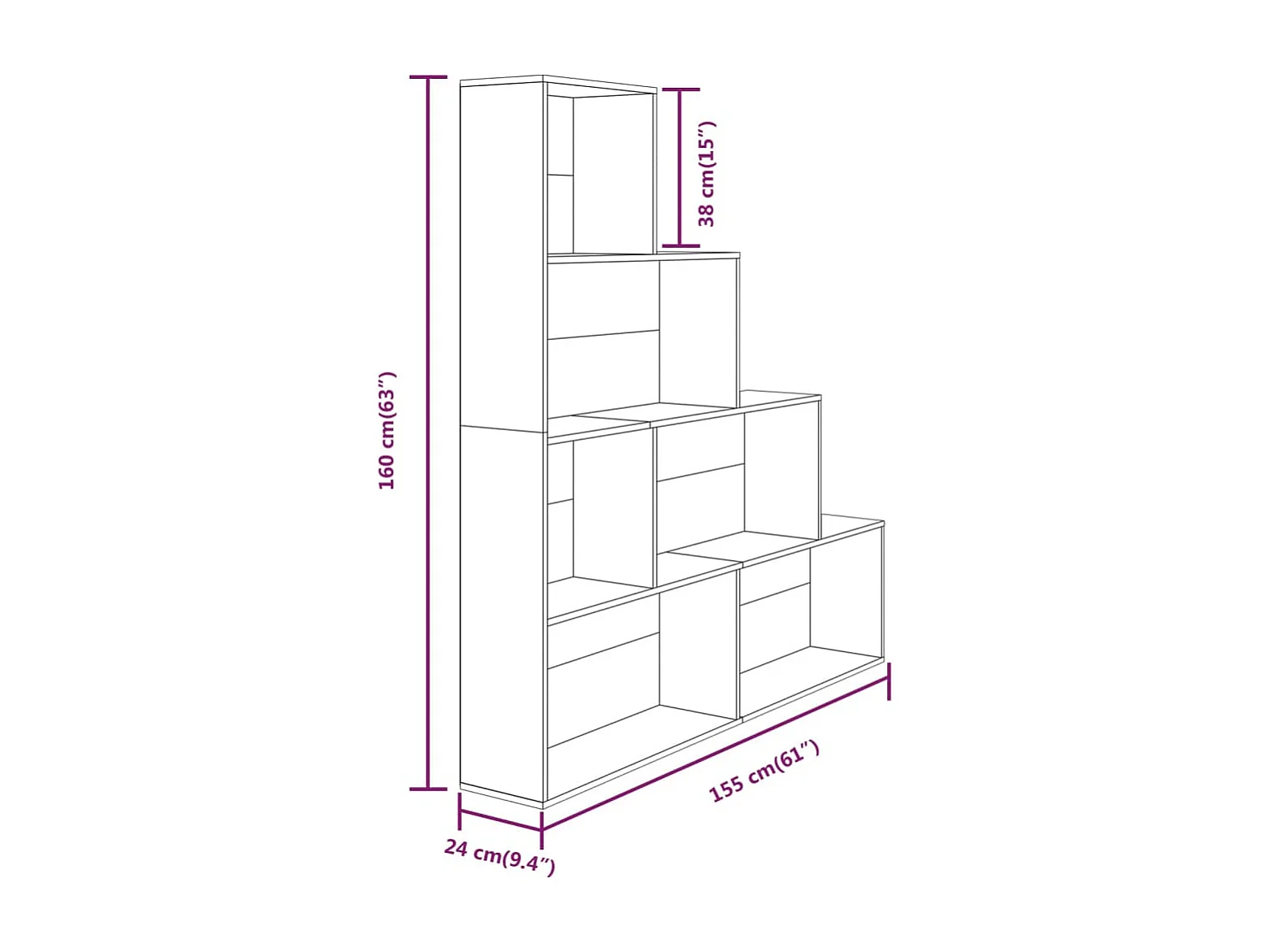 Bibliothèque à 5 niveaux chêne fumé 60,5x24x166,5