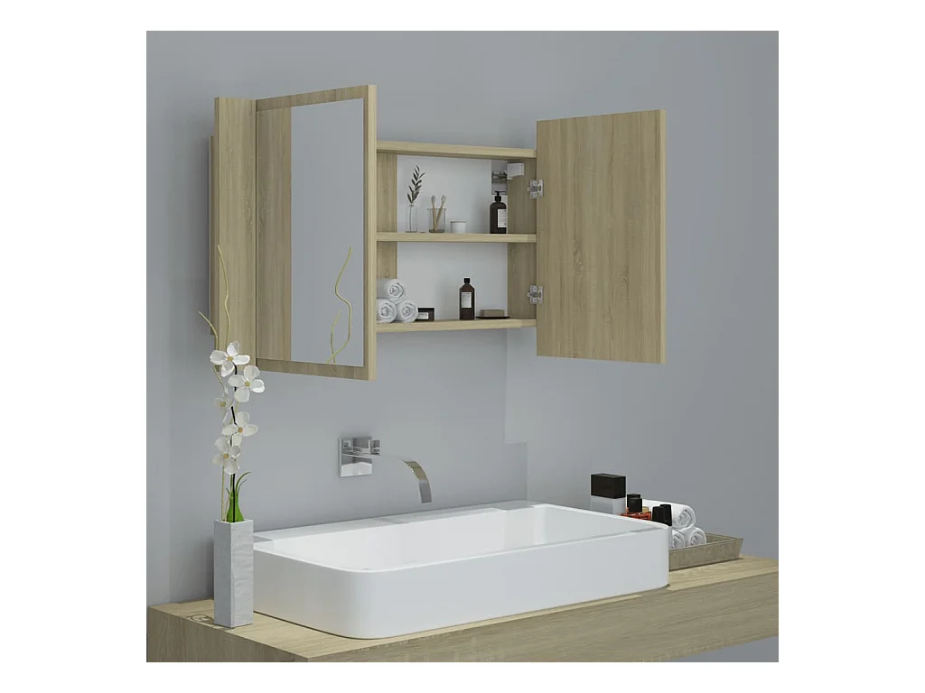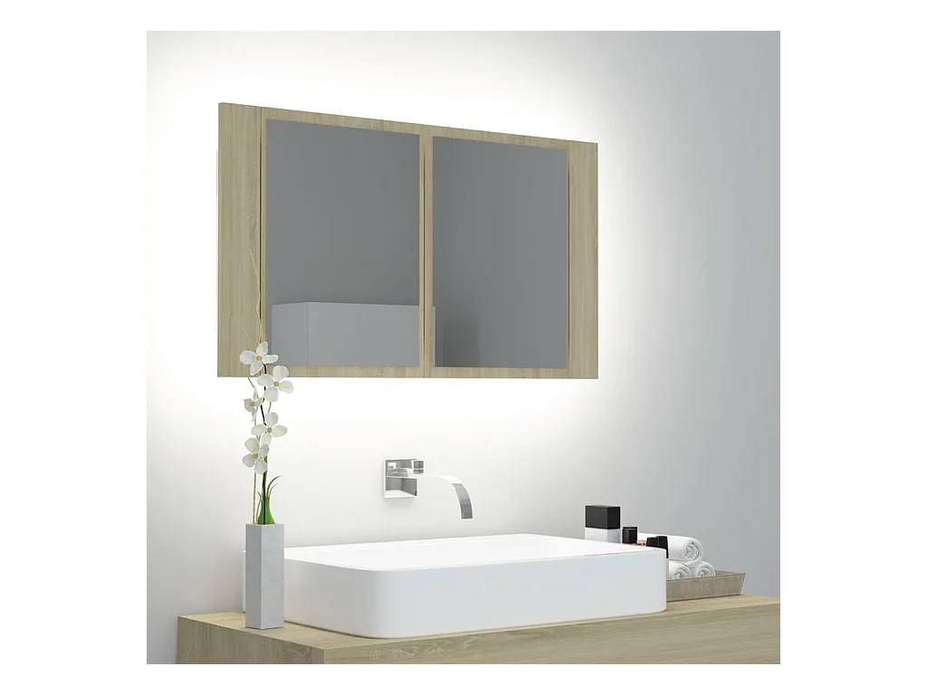 Armoire à miroir à LED de bain Chêne sonoma 80x12x45 Acrylique