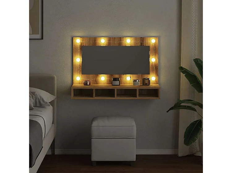 Armoire à miroir avec LED chêne artisanal 90x31,5x62