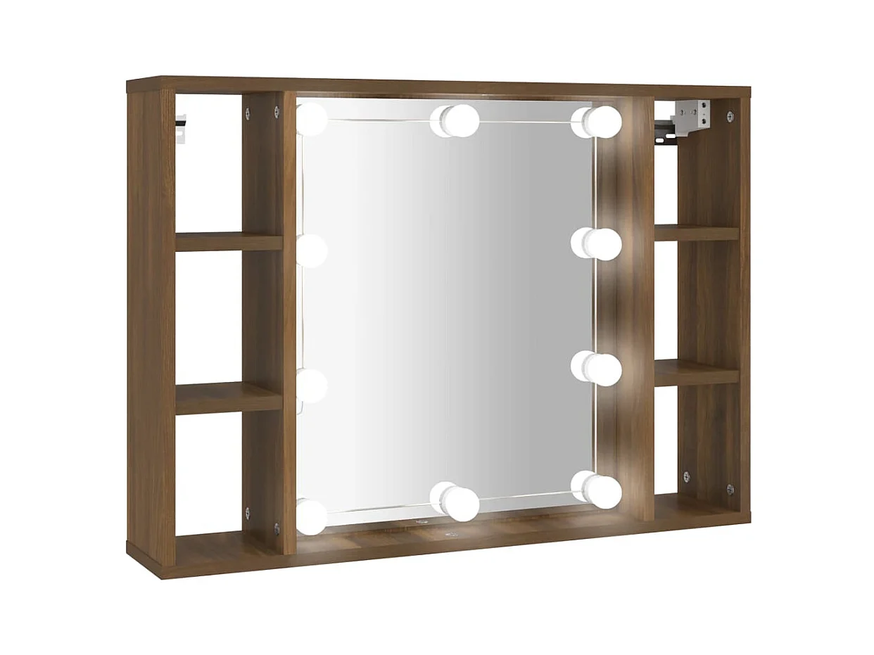 Armoire à miroir à LED de bain chêne marron 100x12x45 cm