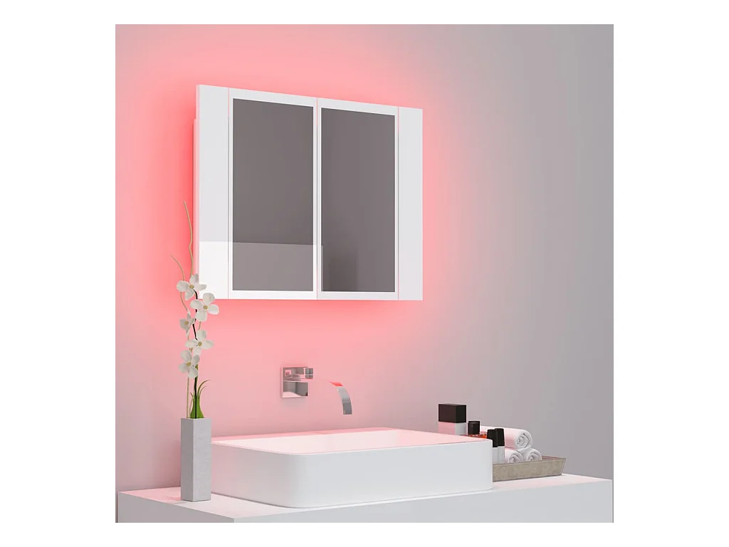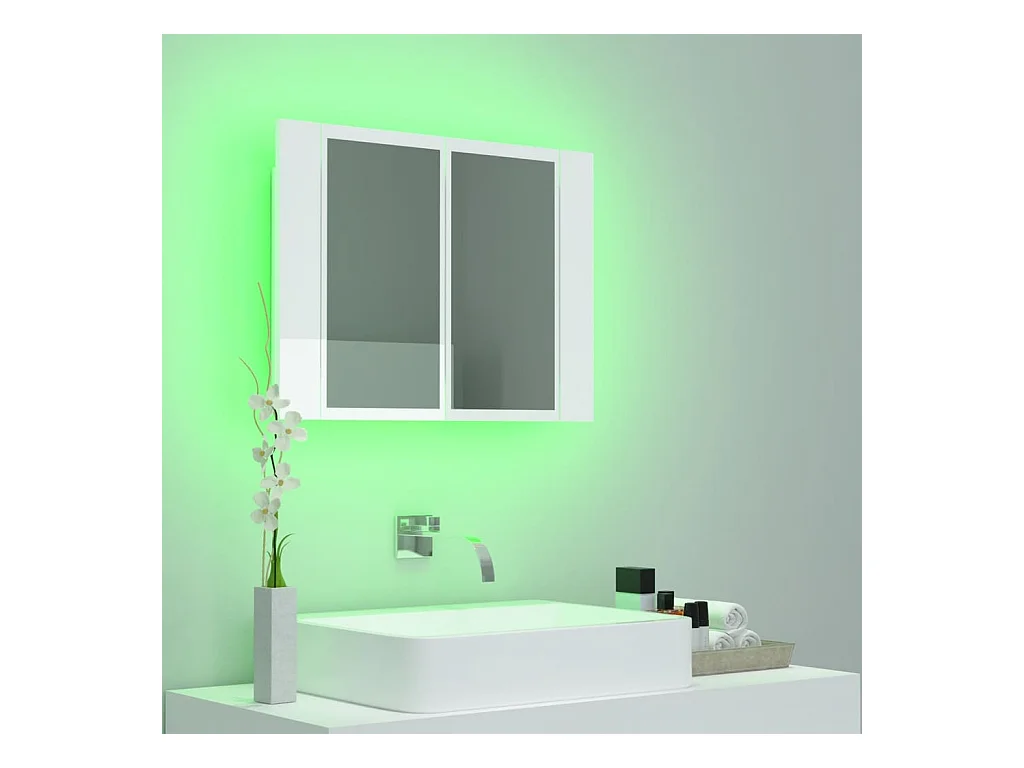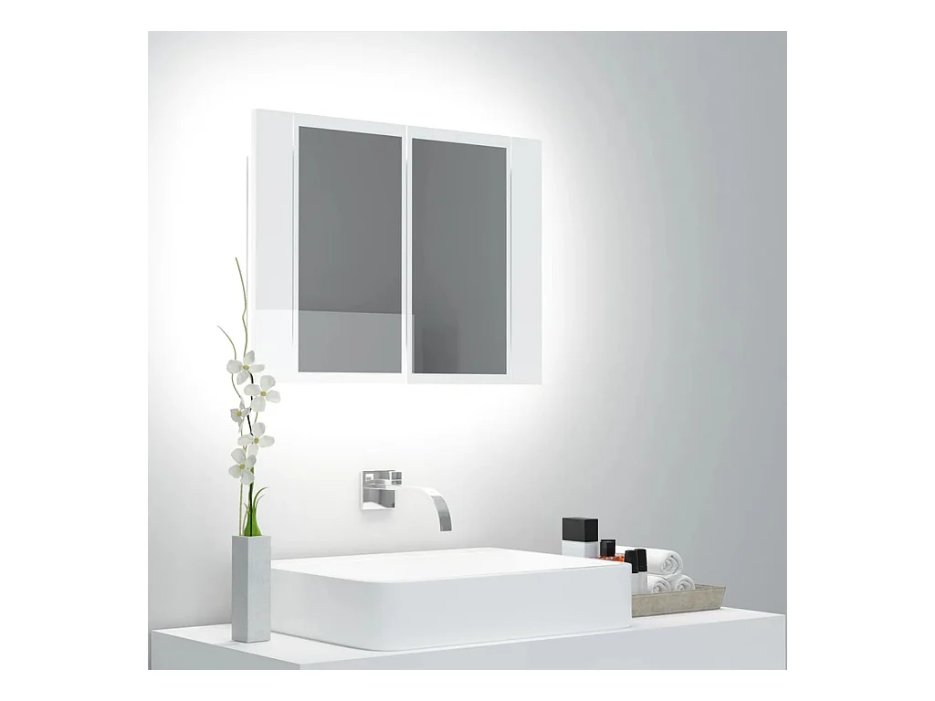 Armoire à miroir de bain à LED Blanc brillant Acrylique