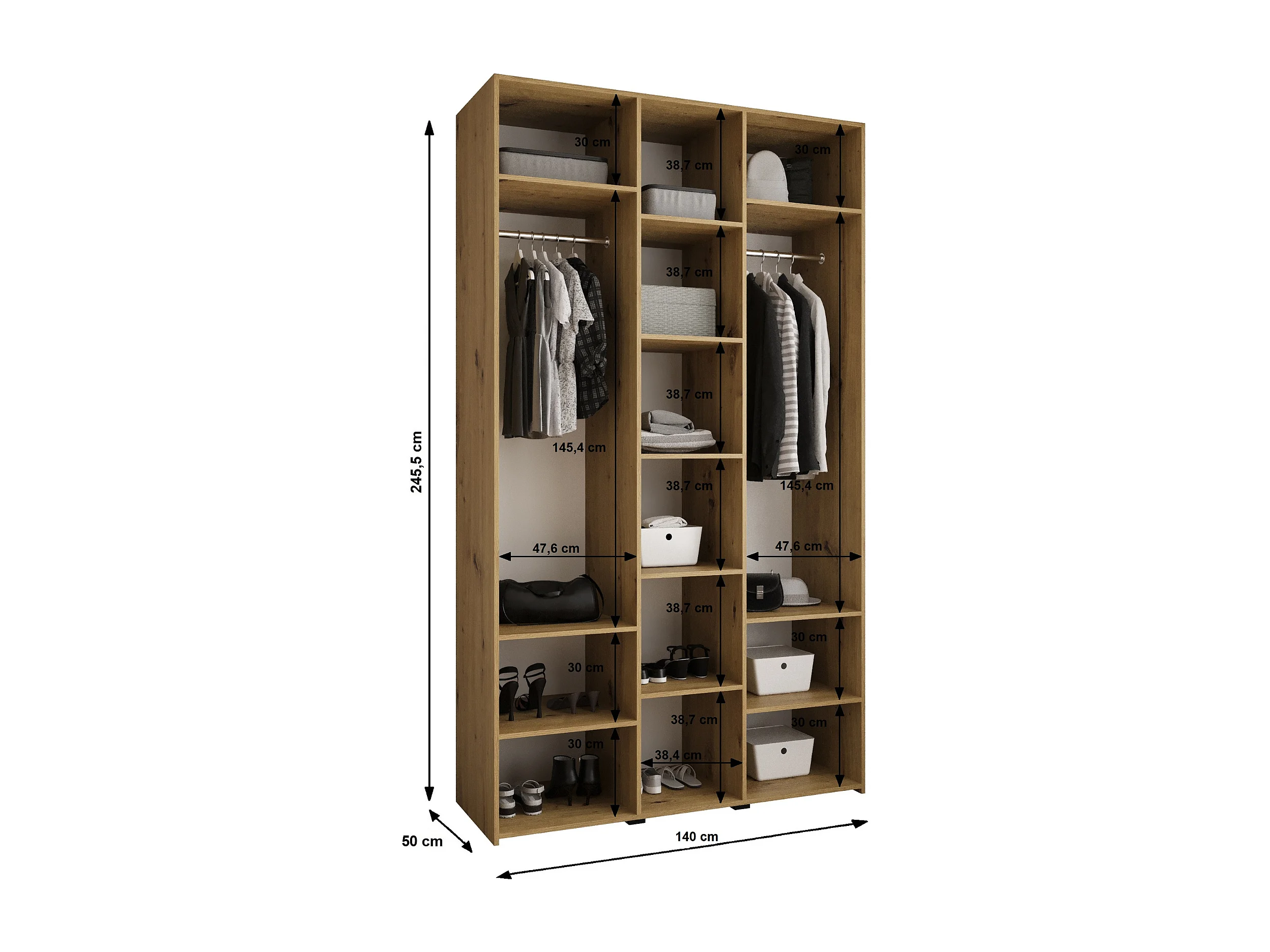 Armoire à portes battantes Como 1 245,5/140/50 3 portes (blanc/or)
