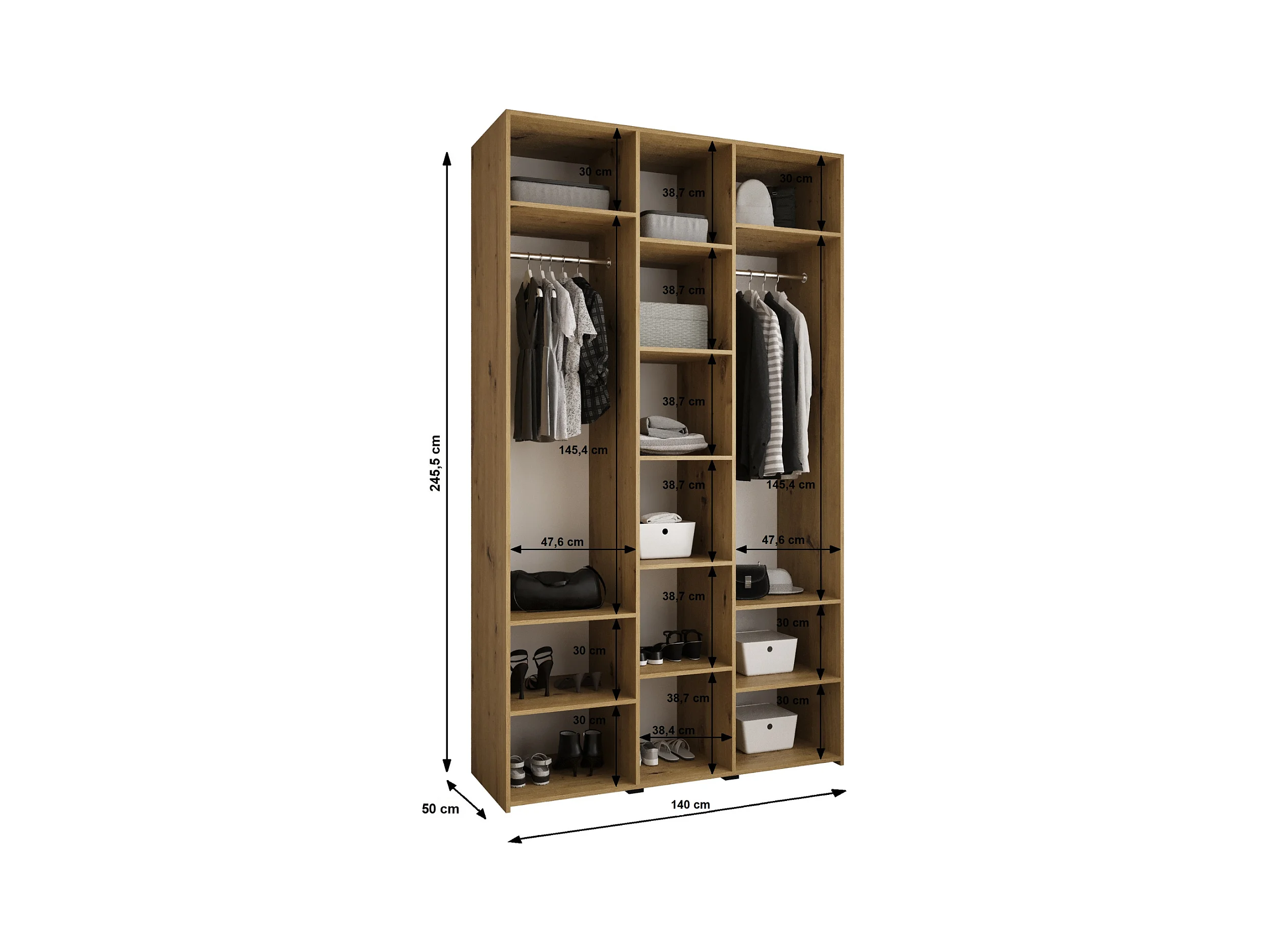 Armoire à portes battantes Como 4 245,5/140/50 3 portes (blanc/noir)