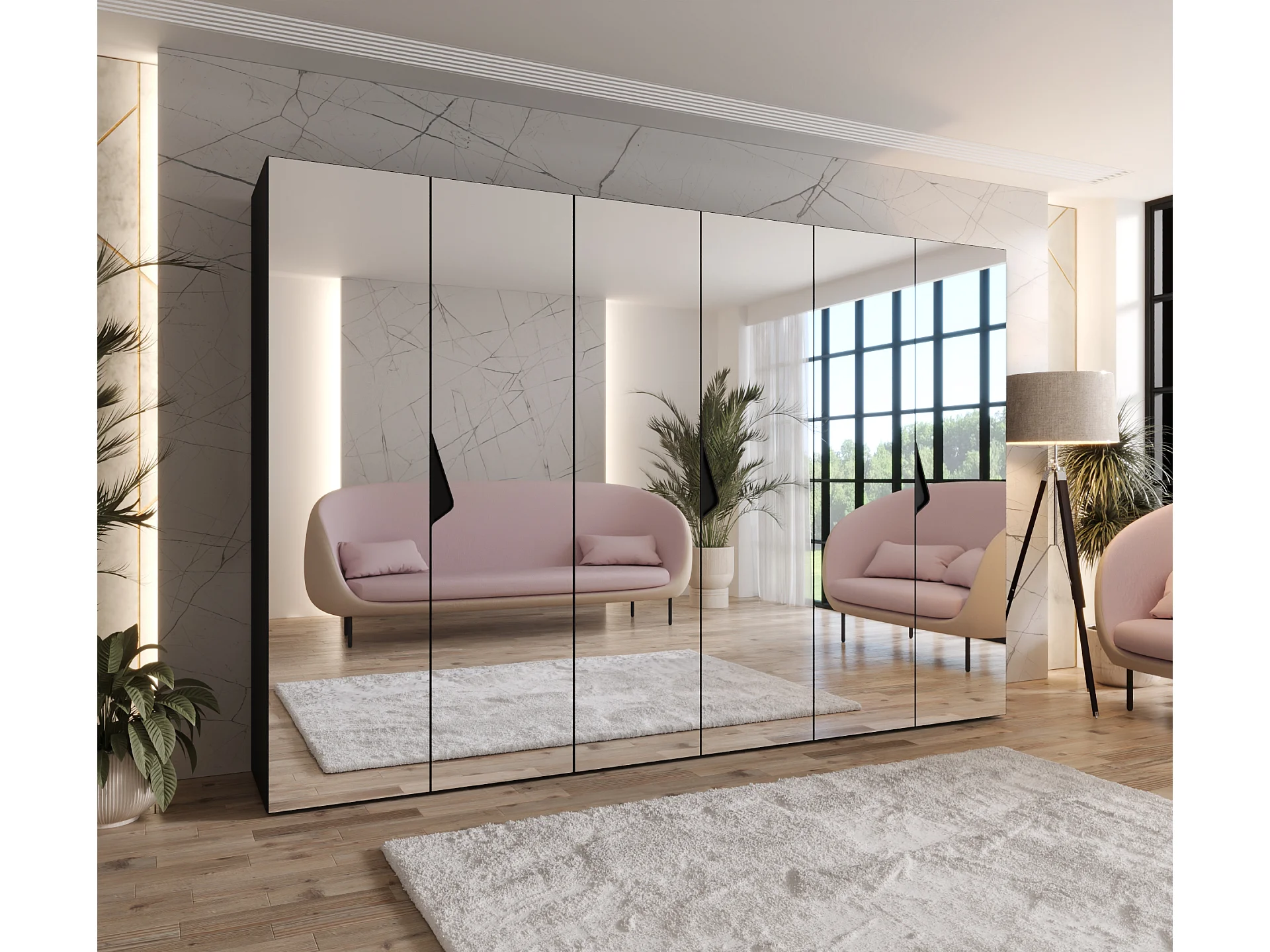 Armoire à portes battantes Sandi 3 300 (100x3) / 202 / 52 (Noir + poignées: Noir)