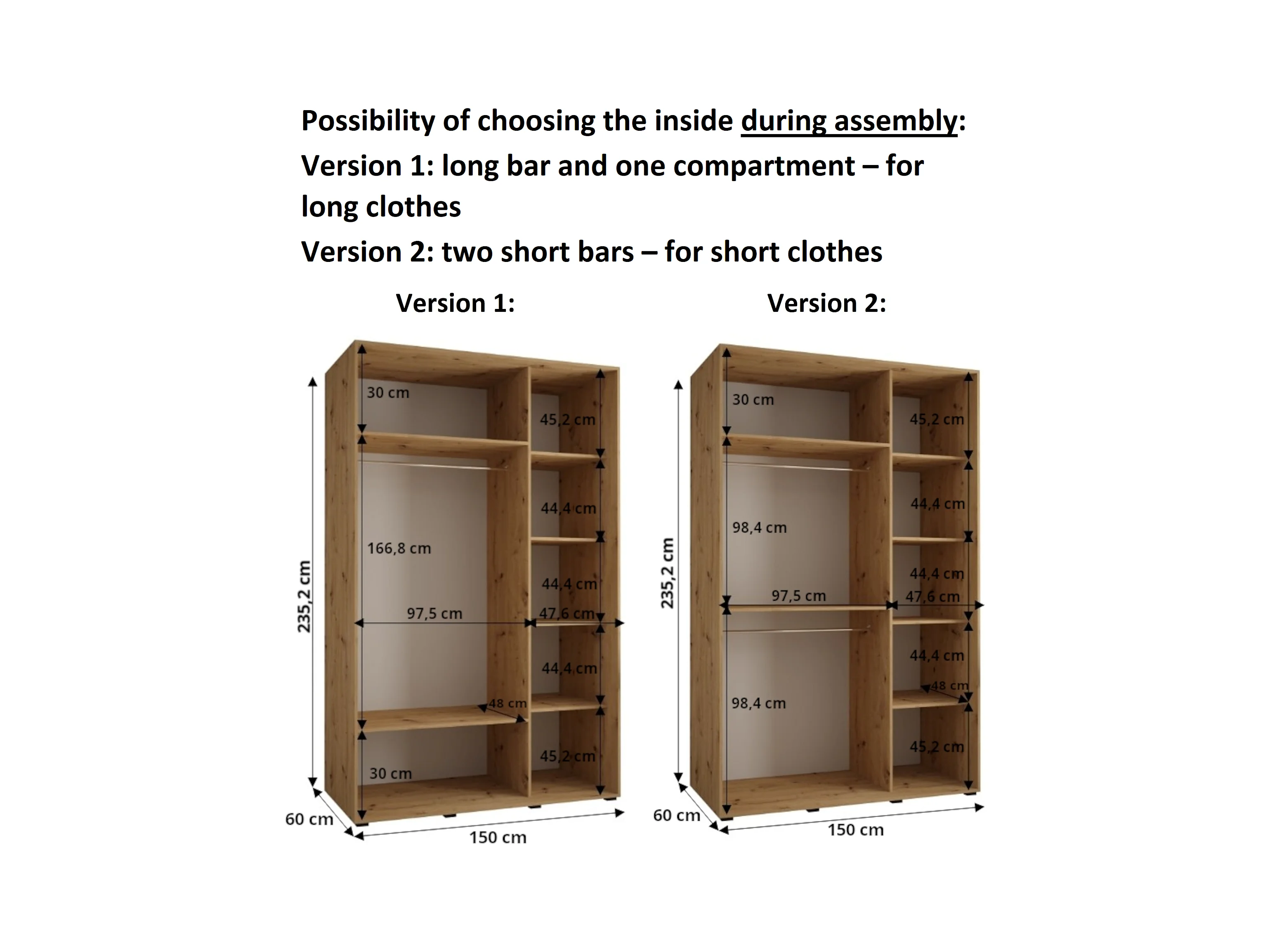 ARMOIRE DAVOS 1 À PORTES COULISSANTES 235,2/150/60 3 portes (Blanc/Blanc/Argent)