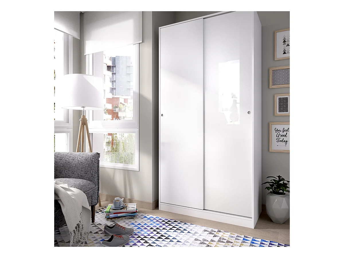 Armoire À Portes Coulissantes Coloris Blanc Brillant - L. 100 X P. 50 X H. 204 Cm
